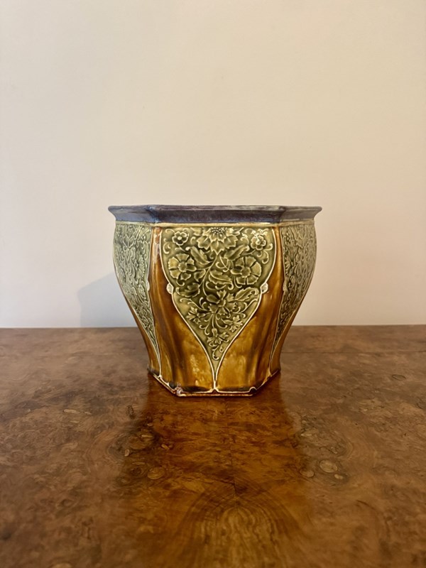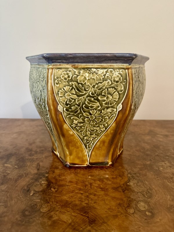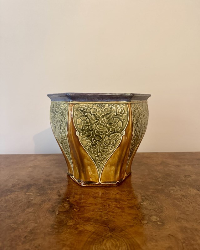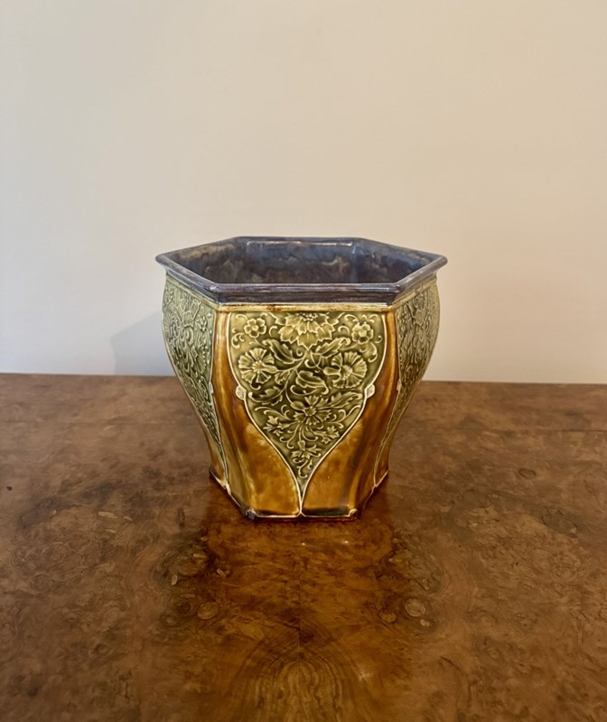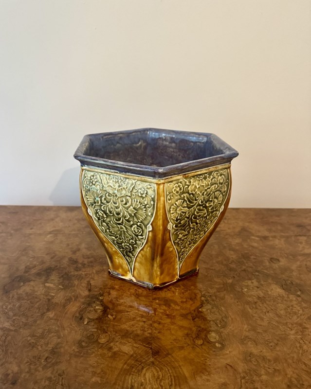 Quality Antique Doulton Lambeth Hexagonal Jardiniere By Ethel Beard
