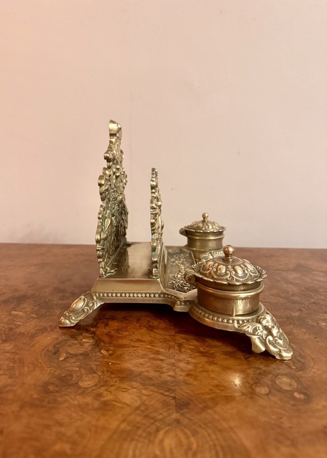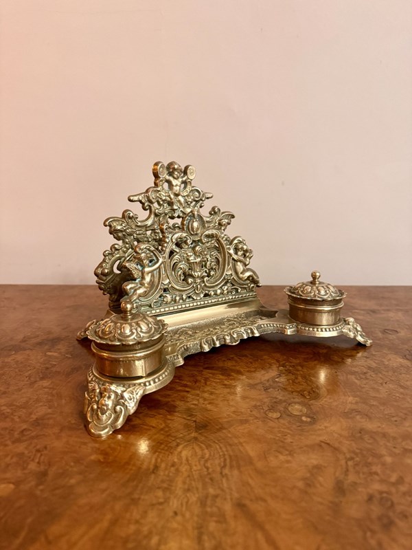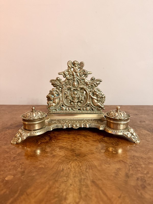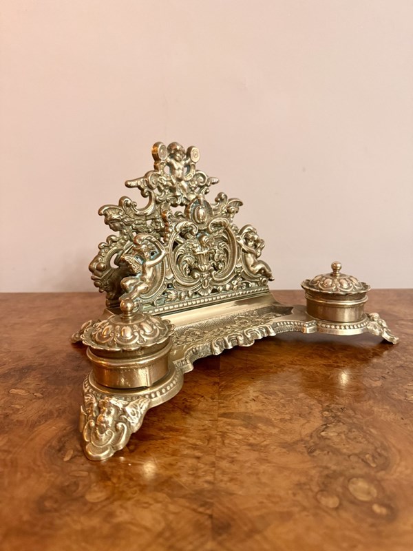 Quality Antique Edwardian Ornate Brass Desk Set