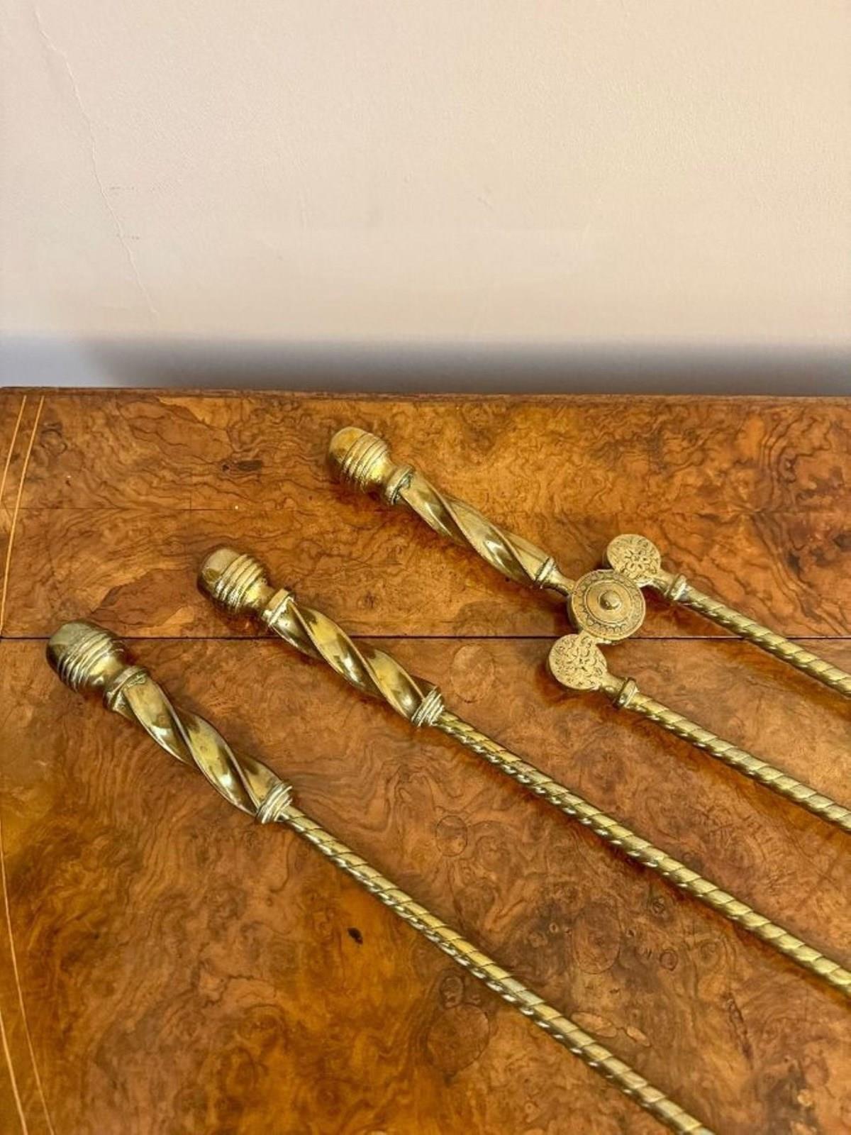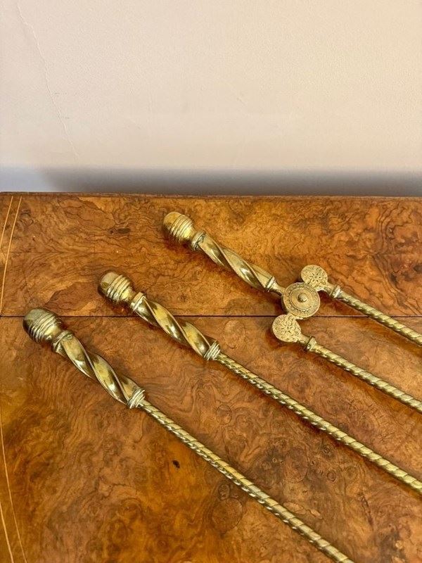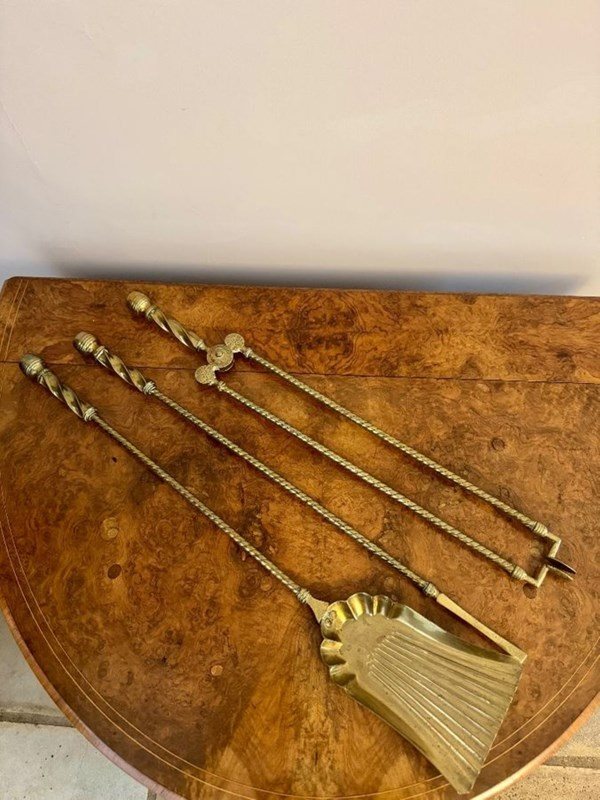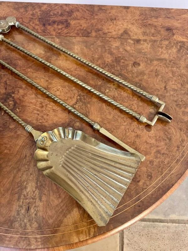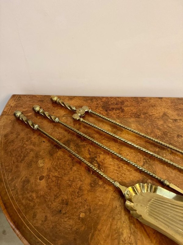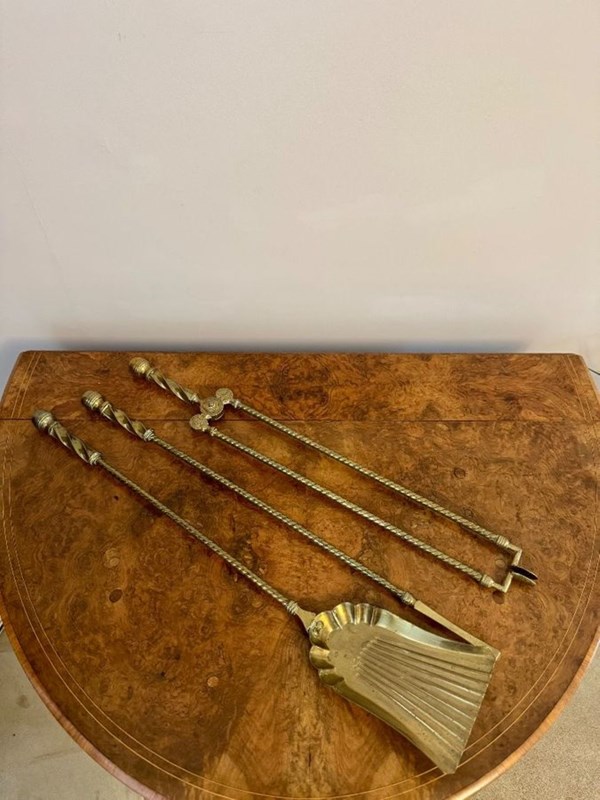 Quality Antique Edwardian Set Of Brass Fire Irons