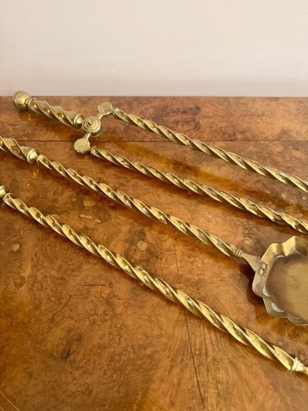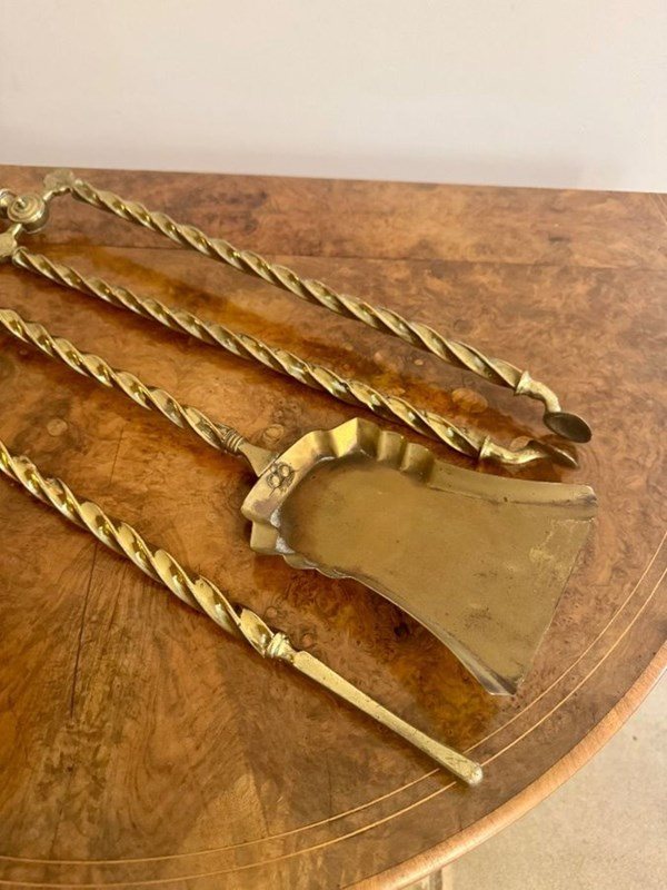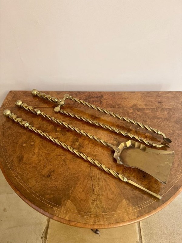 Quality Antique Edwardian Set Of Brass Fire Irons