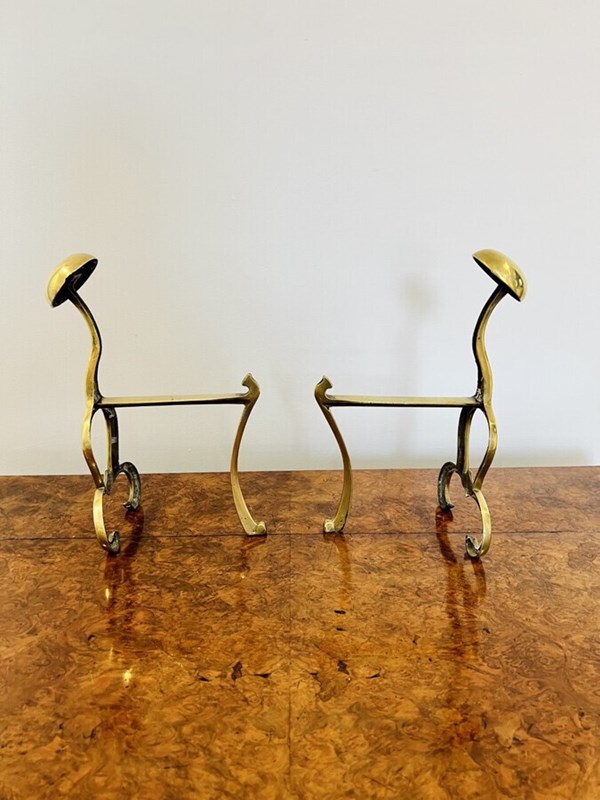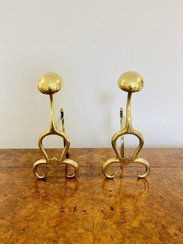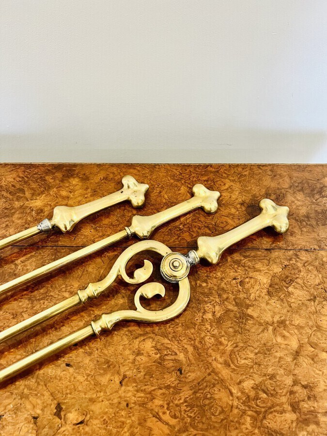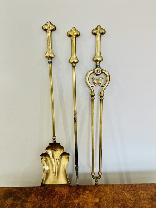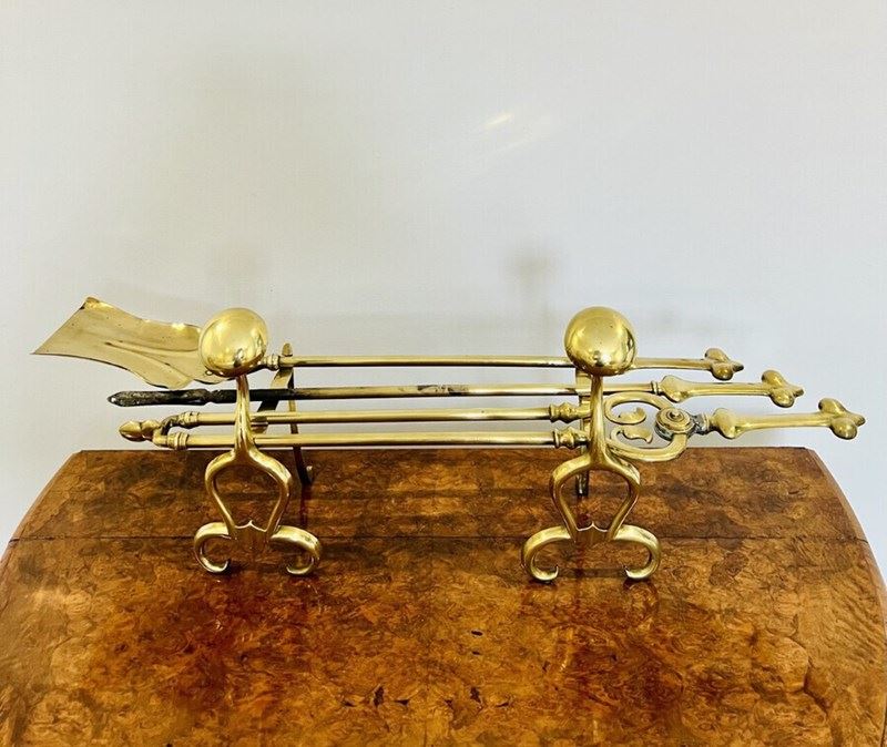 Quality Antique Victorian Brass Fire Irons And Fire Dogs