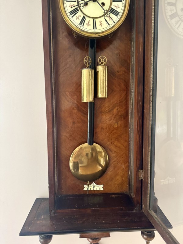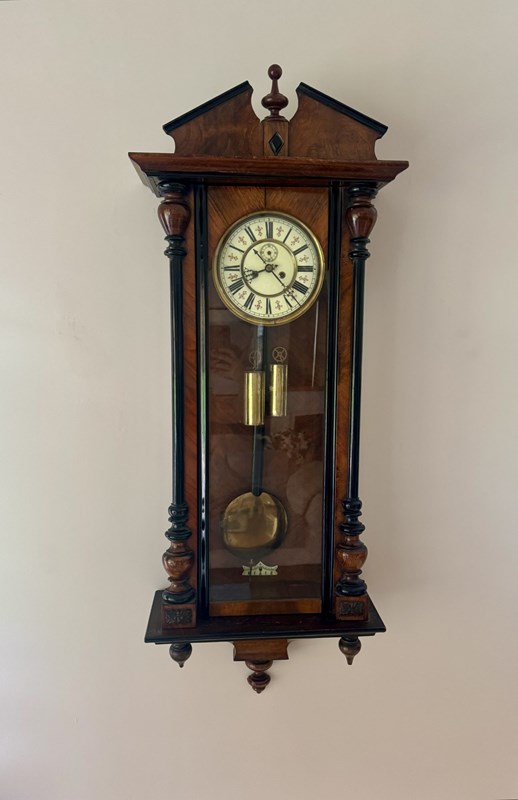Quality Antique Victorian Walnut Double Weight Wall Clock