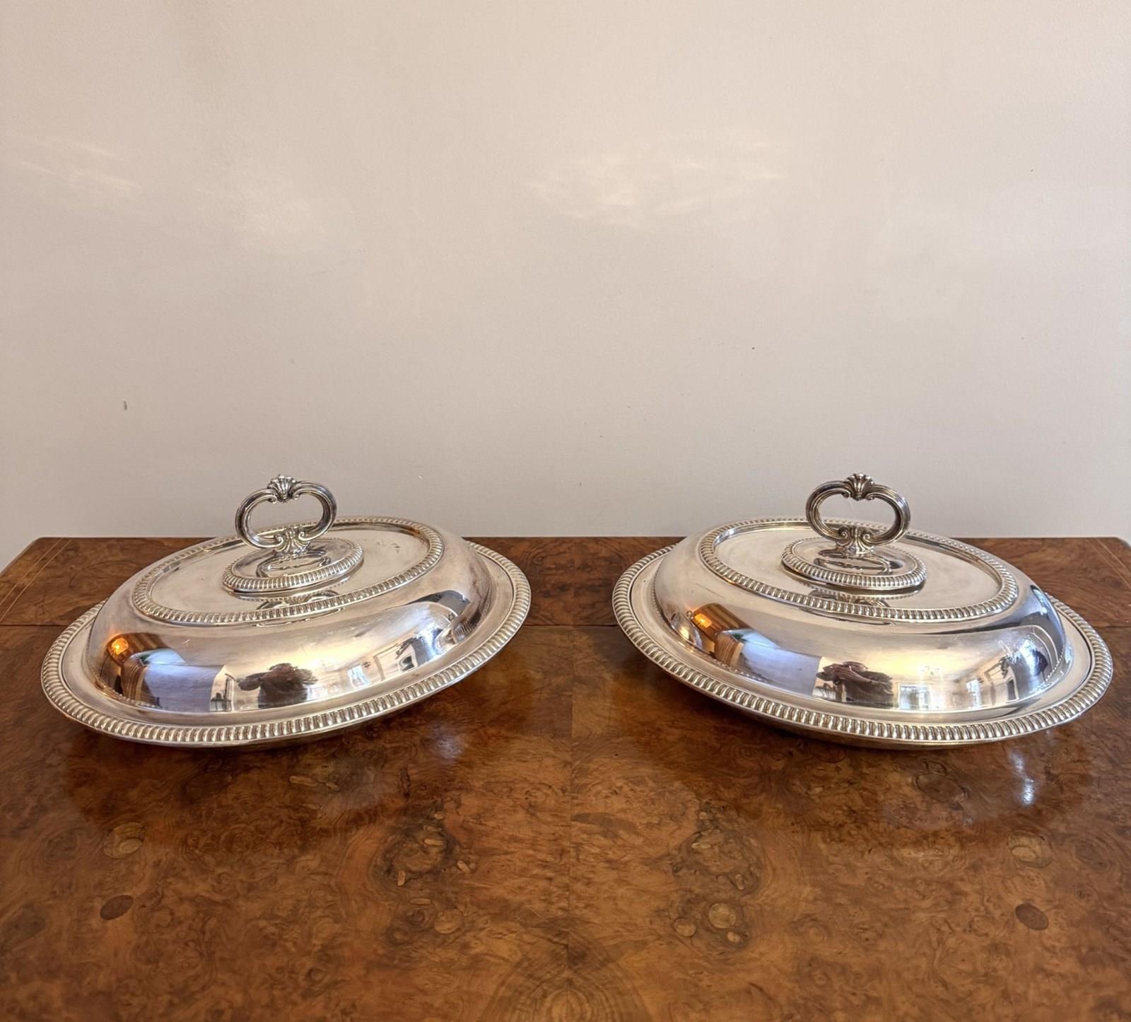 Quality Pair Of Antique Edwardian Silver Plated Oval Entree Dishes