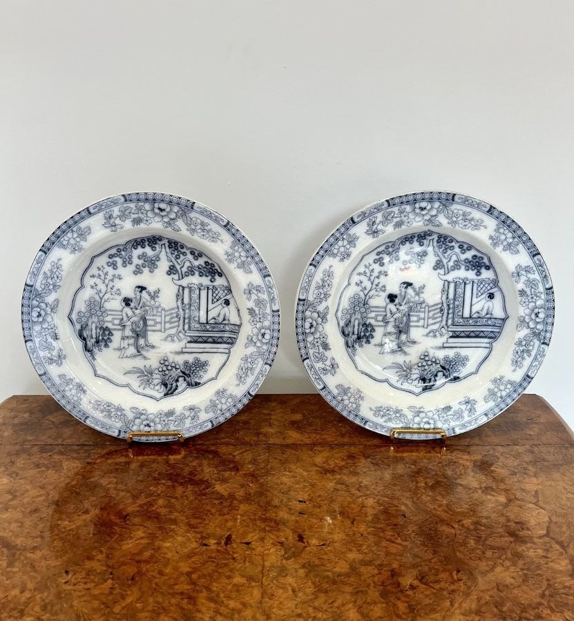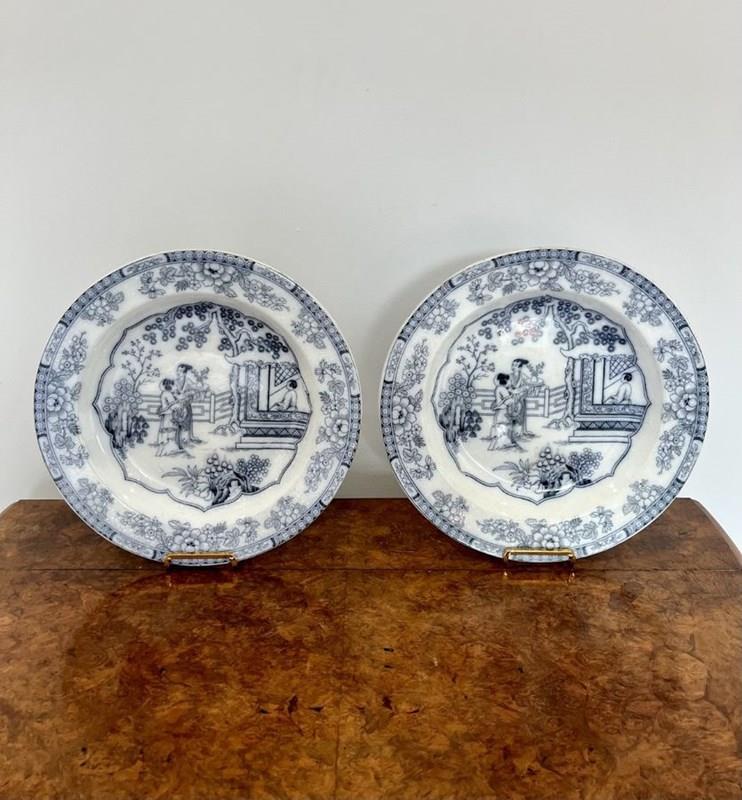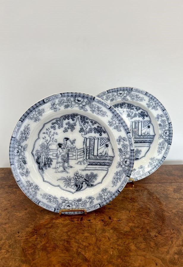 Quality Pair Of Antique Victorian Blue And White Plates