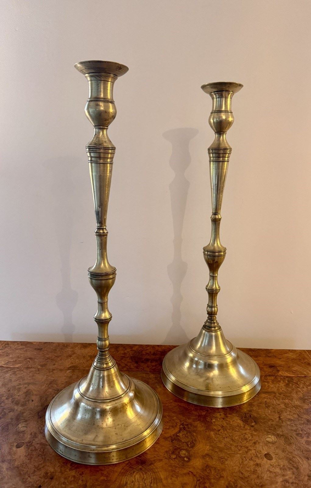 Quality Pair Of Large Antique Victorian Brass Candlesticks