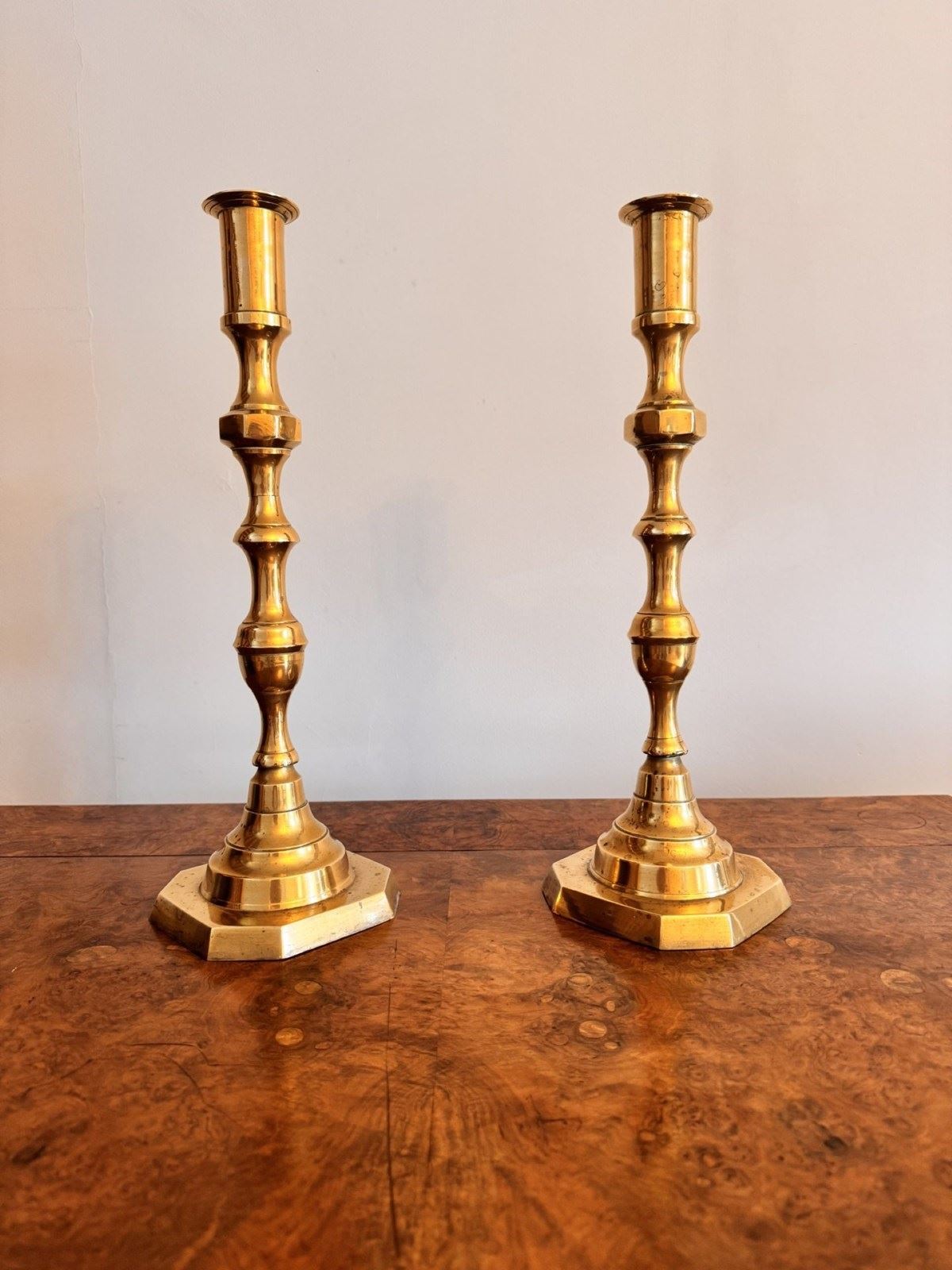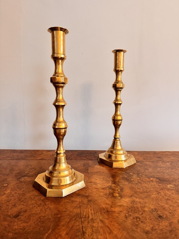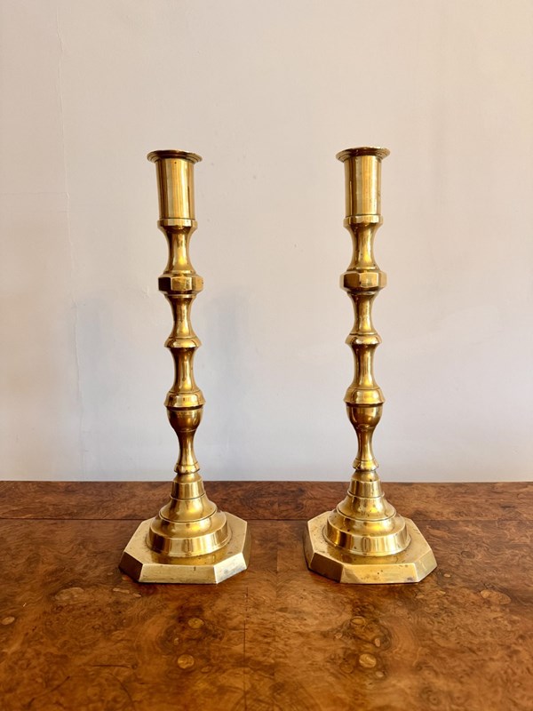 Quality Pair Of Large Antique Victorian Brass Candlesticks
