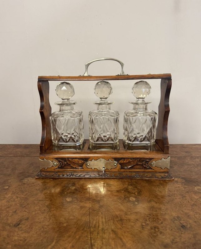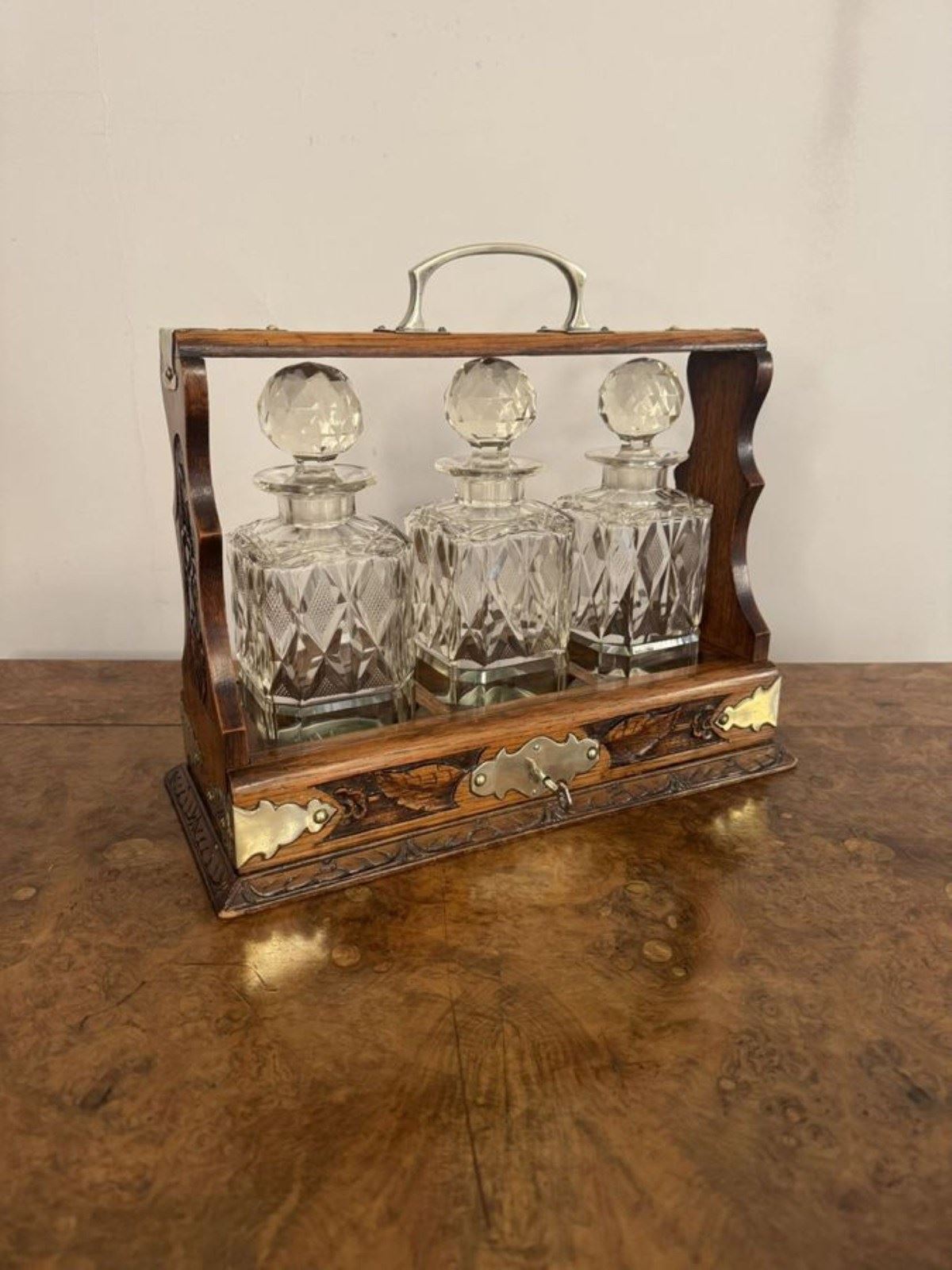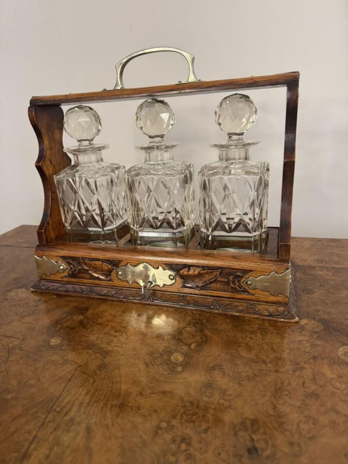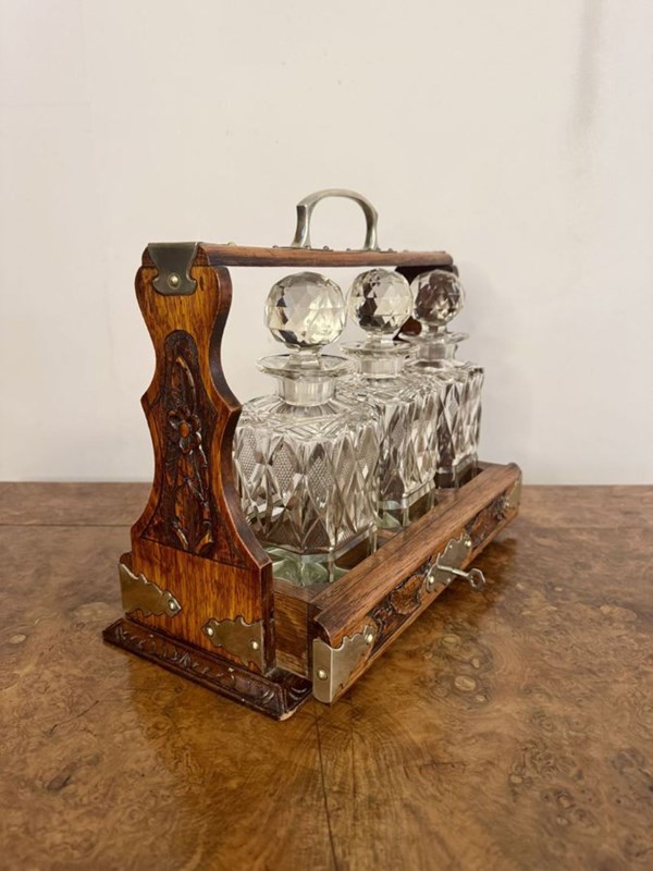 Stunning Quality Antique Victorian Carved Oak Tantalus