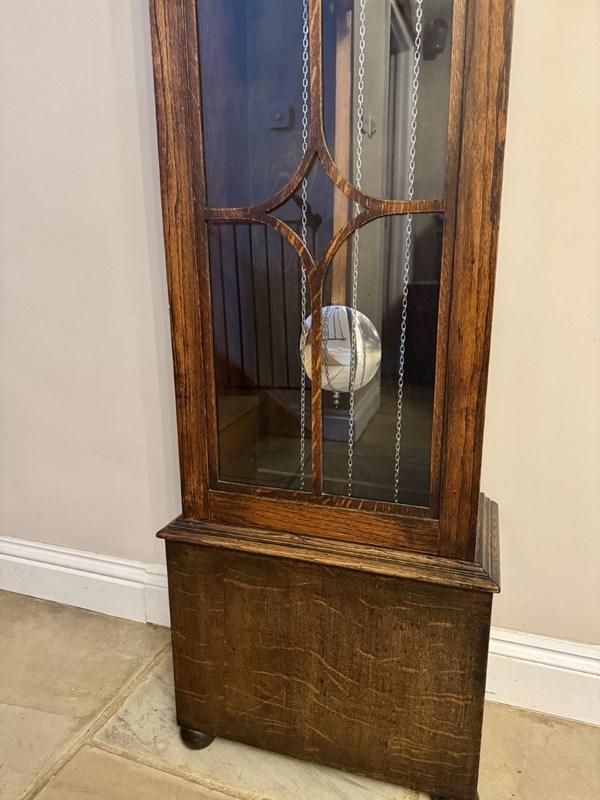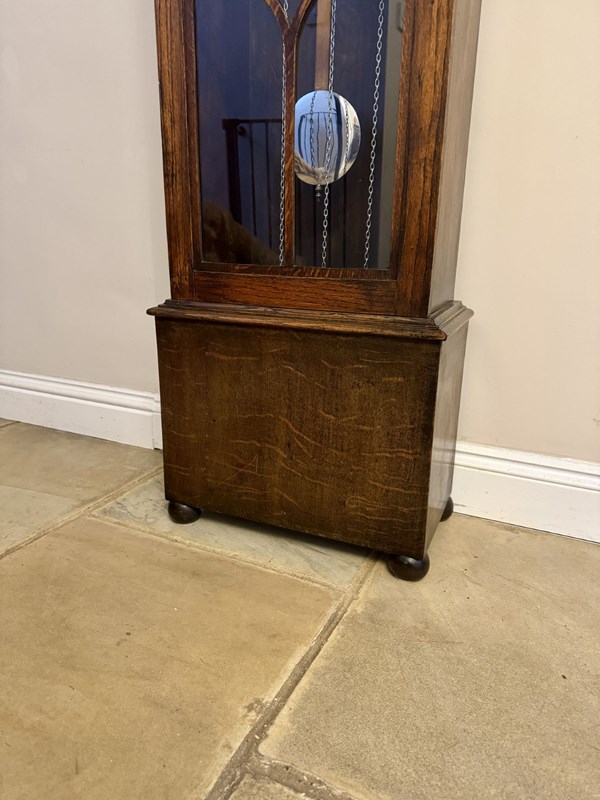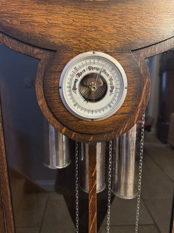 Unusual Quality Antique Oak Chiming Longcase Barometer Clock