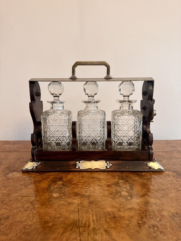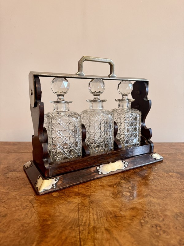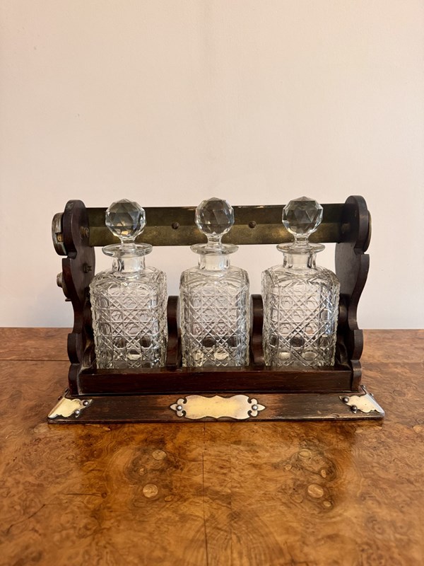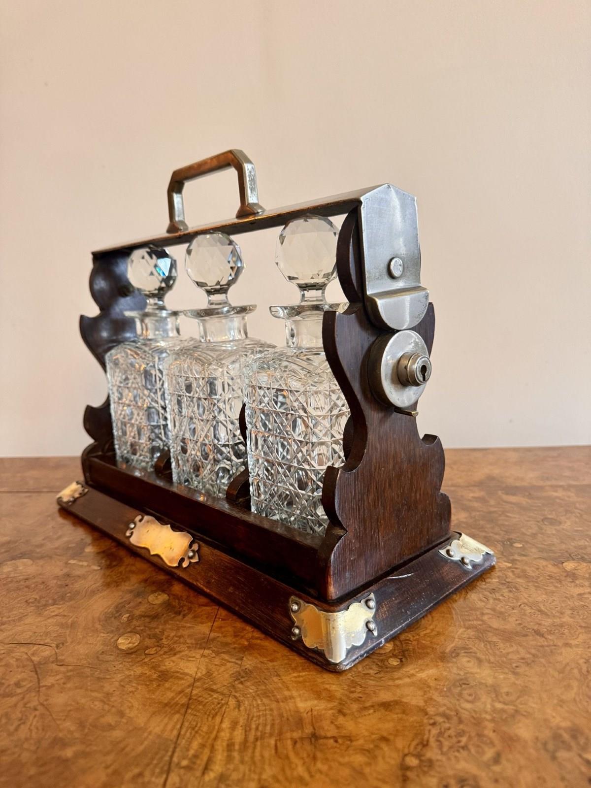 Wonderful Antique Oak Three Bottle Tantalus