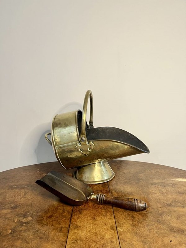Wonderful Antique Victorian Brass Coal Scuttle And Shovel