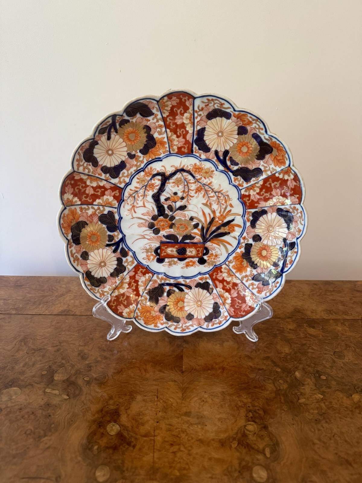 Wonderful quality antique Japanese imari plate, having a quality antique Japanese imari plate with a centre panel with flowers and trees surrounded by fantastic panels with flowers and scrolls, hand painted in vibrant red, blue, white and gold colours. D. 1900
