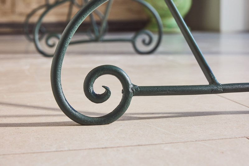 We discovered this exceptional 1920s cast iron garden table in the South of France. As the original marble top had perished over time, we have carefully replaced it with a new marble top that complements the character of the piece.