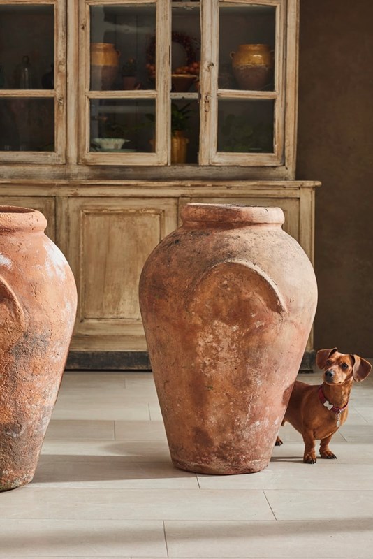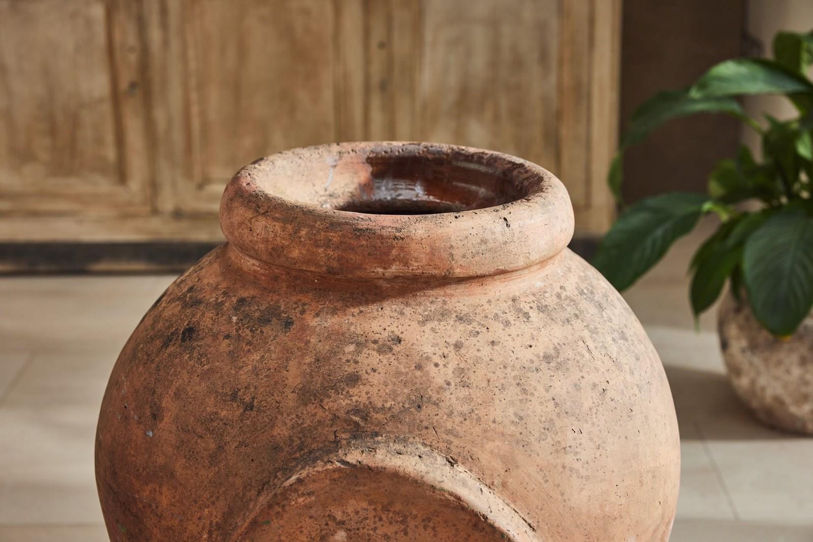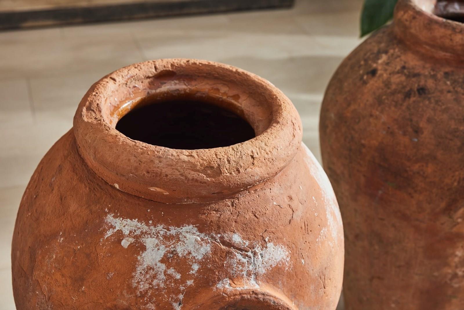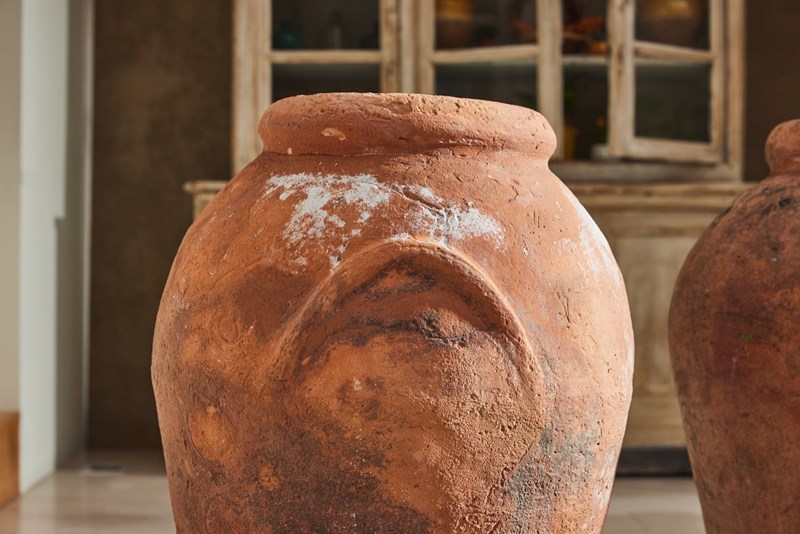 A handsome pair of tall Florentine terracotta urns, attributed to Montelupo and dating from the 19th century. Montelupo Fiorentino remains one of Italy’s most important centres of pottery production, known for the quality of its clay and craftsmanship.
