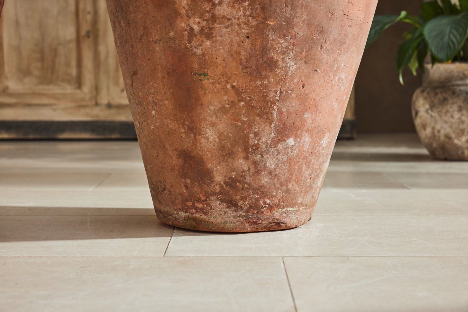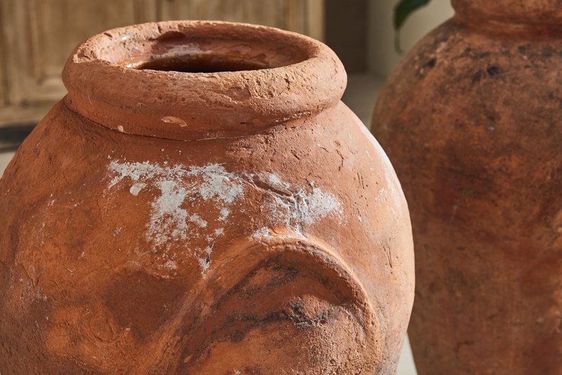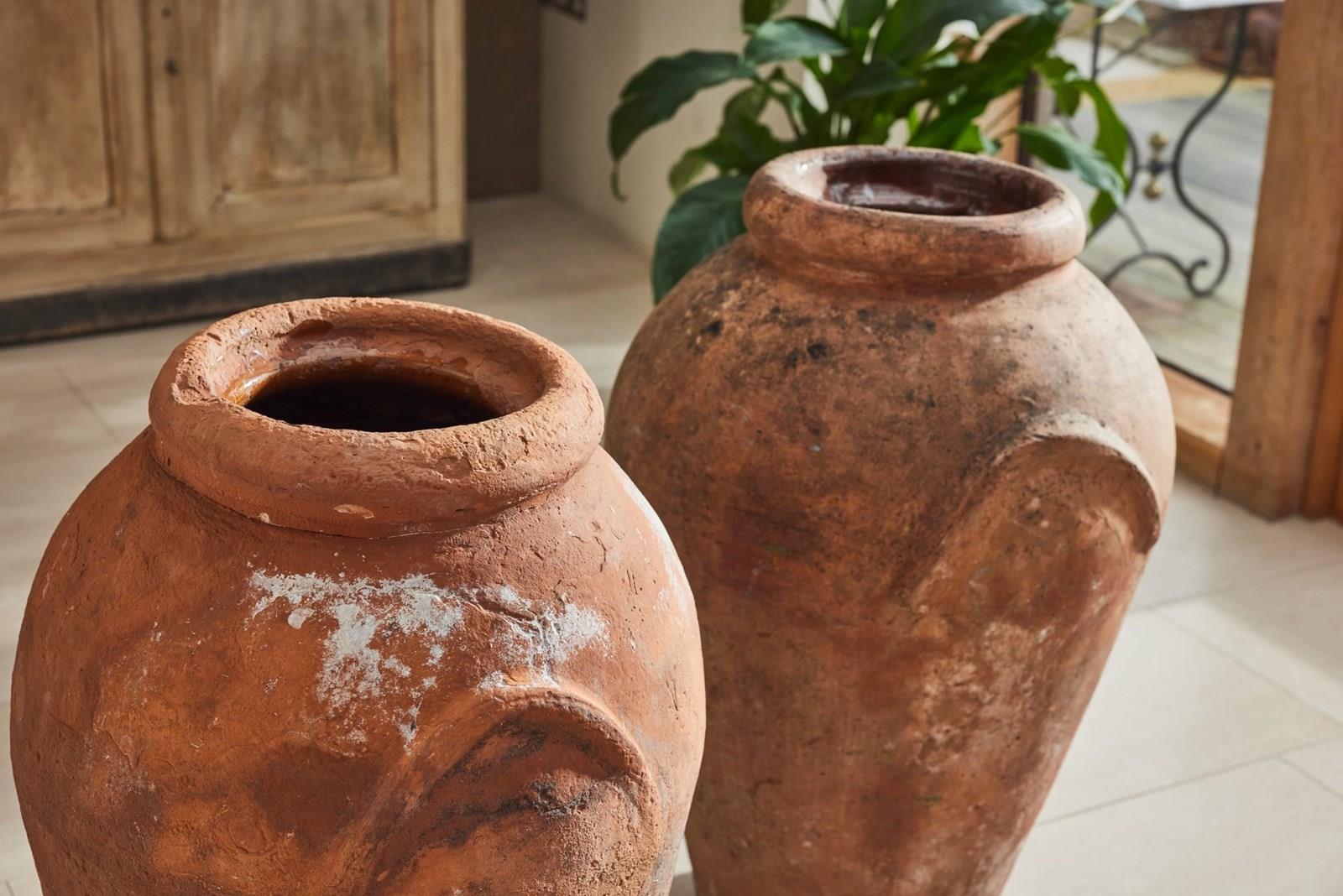 These urns retain traces of original paint and have aged beautifully, with a warm patina that reflects their history. Well-proportioned and decorative, they work equally well flanking a hallway, in a garden room, or placed in a sheltered position outdoors.