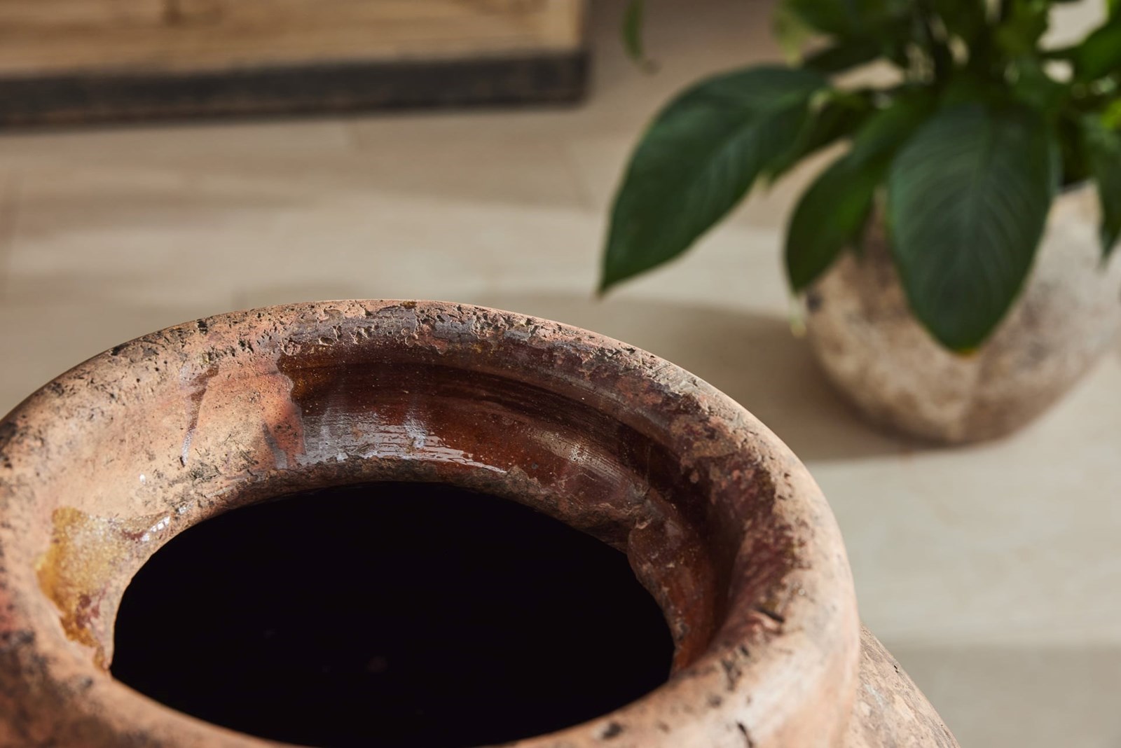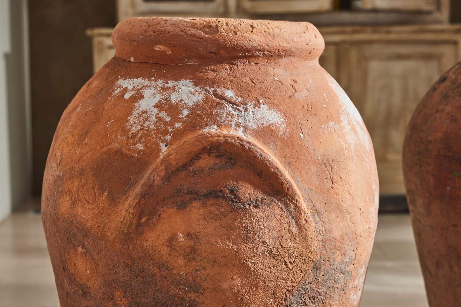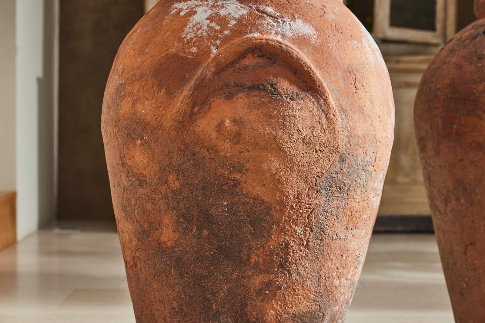 These urns retain traces of original paint and have aged beautifully, with a warm patina that reflects their history. Well-proportioned and decorative, they work equally well flanking a hallway, in a garden room, or placed in a sheltered position outdoors.