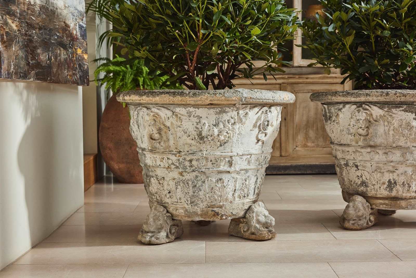 Deep and well proportioned, they are ideal for trees or large shrubs and work particularly well positioned either side of an entrance, gateway, or formal approach. The planters are in good structural condition, showing only the expected wear and surface ageing consistent with their age and use.