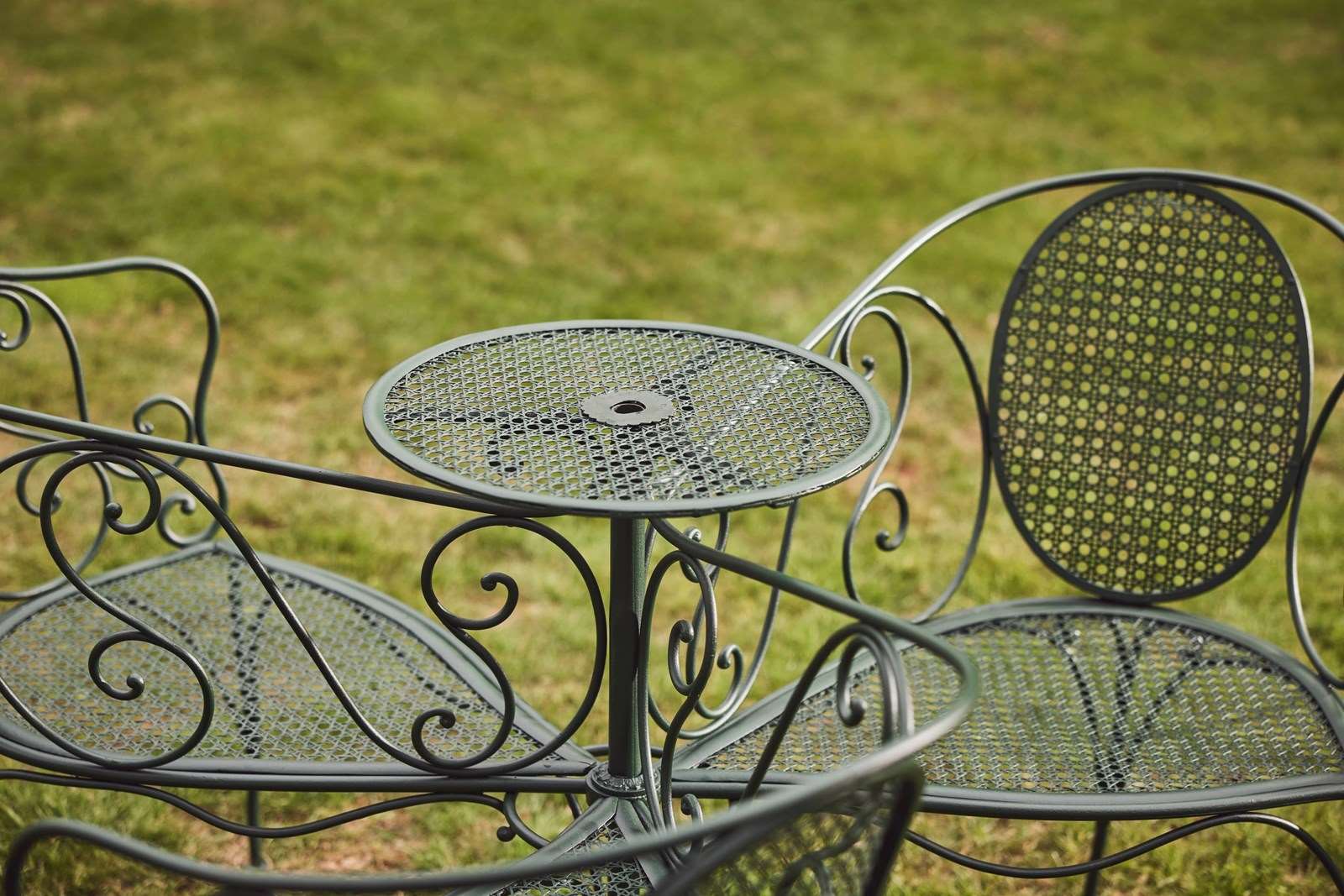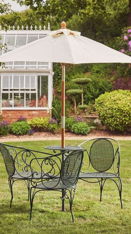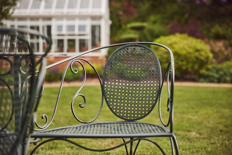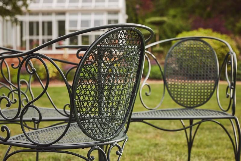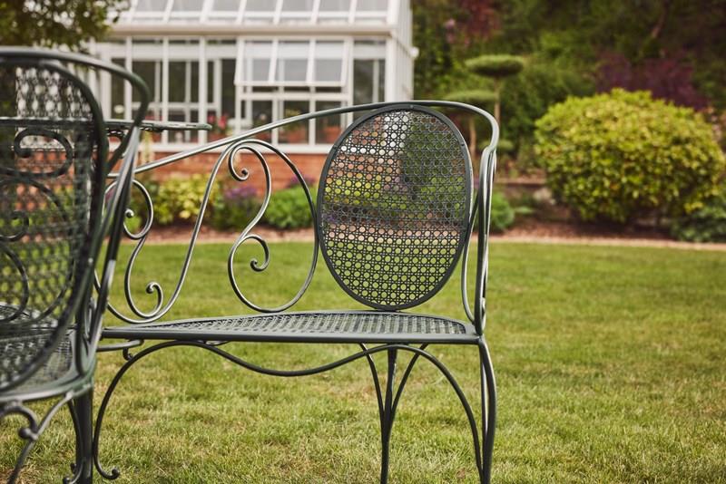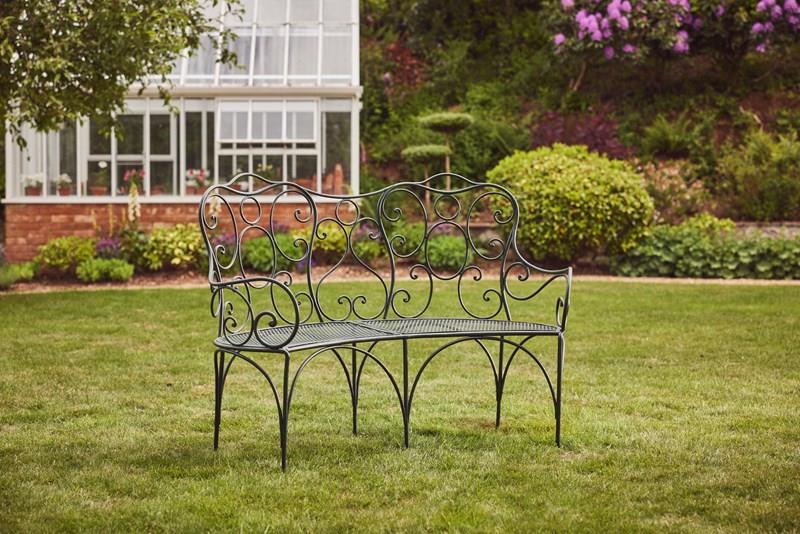 A remarkable piece of garden history, this rare mid-19th century bench was designed in for courtship as it allowed a young couple to sit together while a chaperone occupied the third seat.