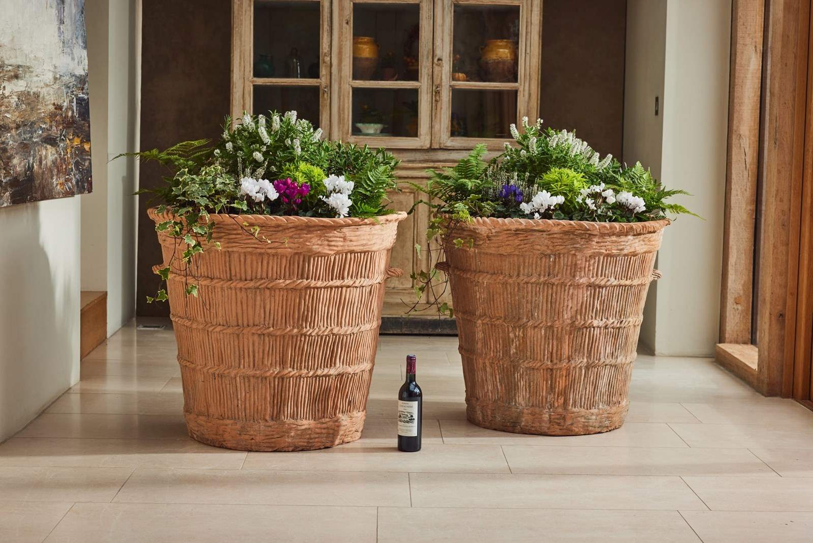 They are ideally suited for mature olive, bay, or other specimen trees, where the planters contribute as much to the composition as the planting itself.