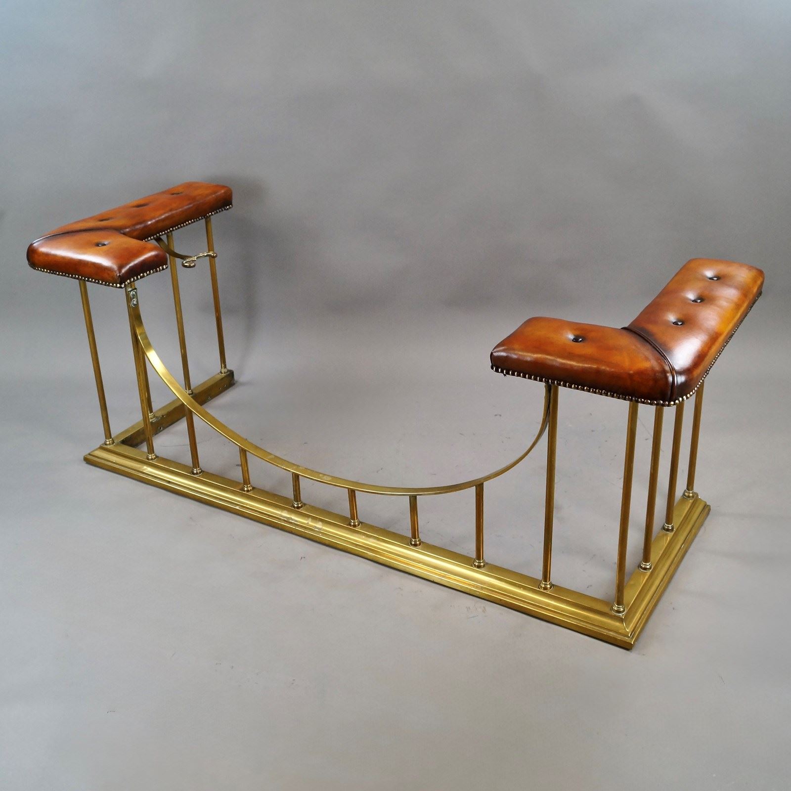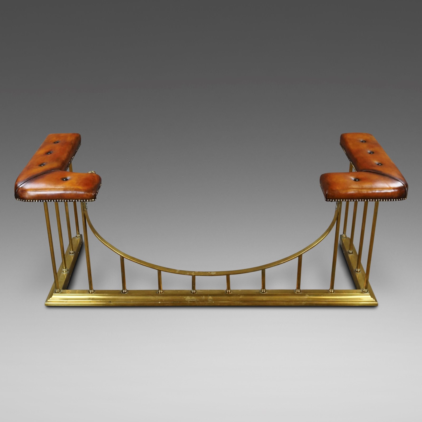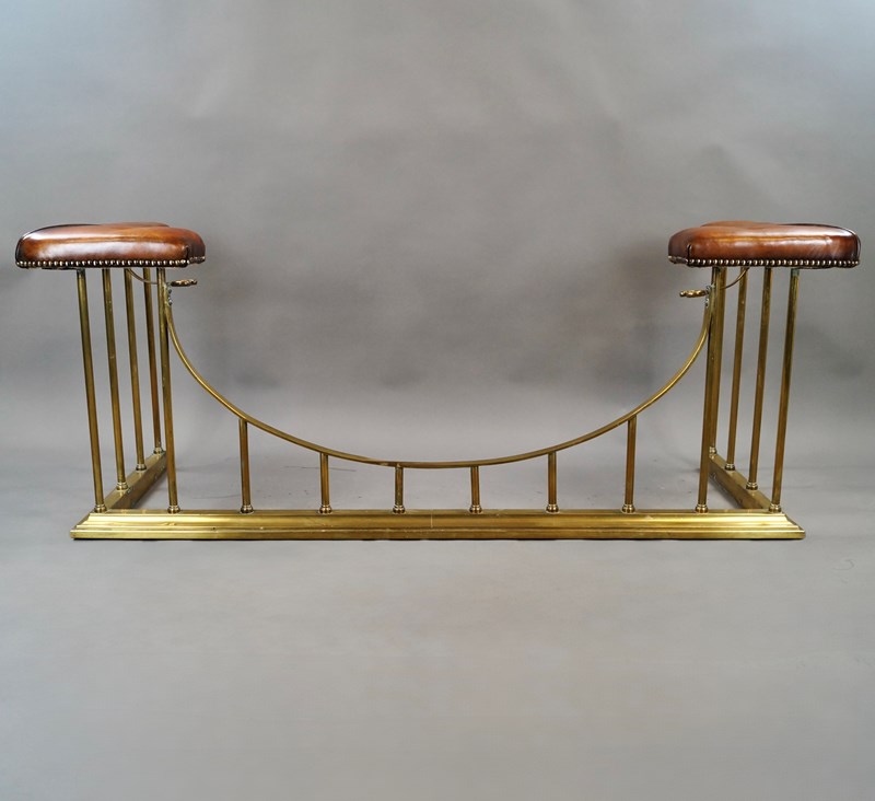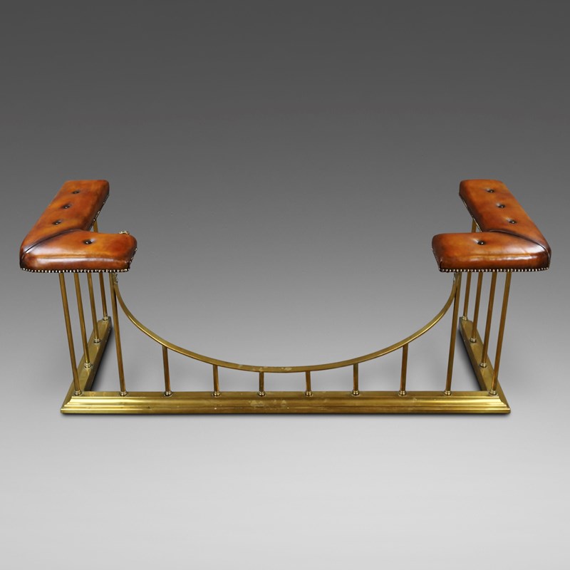19Th Century Brass Club Fender. In very good condition with buttoned, hand dyed leather seats. 590mm high, 1580mm wide and 610mm deep. English. Circa 1880.