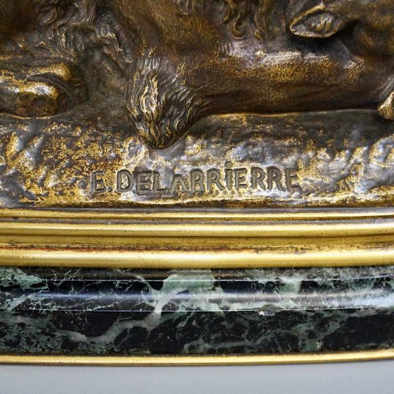 Paul-Édouard Delabrièrre (29 March 1829 – 1912) was a French animalier sculptor who worked in the mid-to-late 19th century and the early 20th century. He had 70 of his sculptures juried into the prestigious Salon art exhibition held annually in Paris. His monumental work called L'Equitation adorns the facade of the Louvre.
