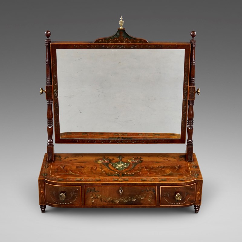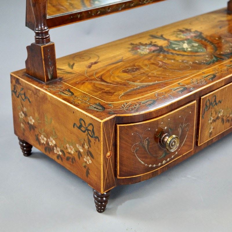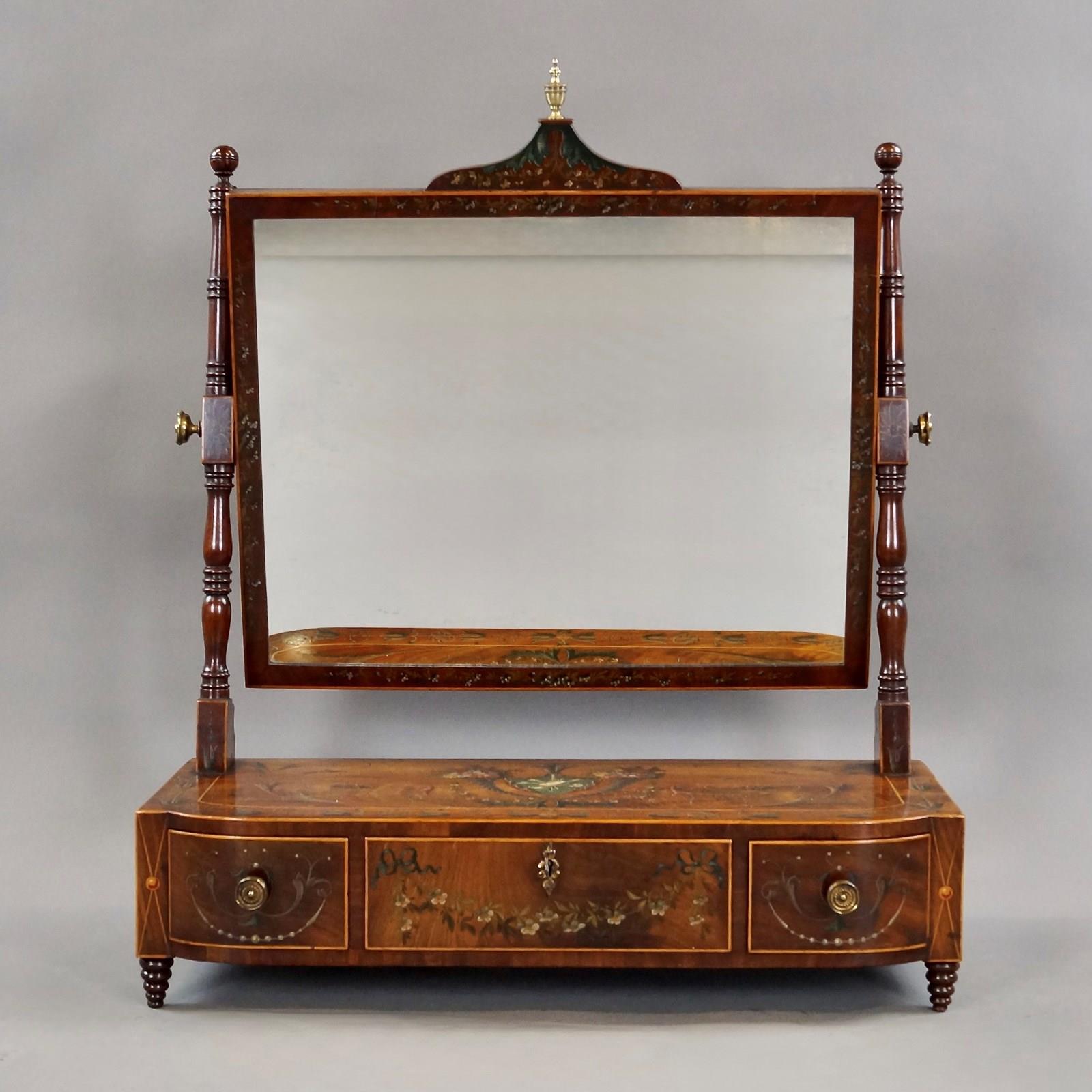 A superb mahogany & decorated toilet mirror. Beautifully made and paint decorated, the mirror is in excellent and original condition. 670mm high, 570mm wide and 240mm deep. English. Circa 1880.