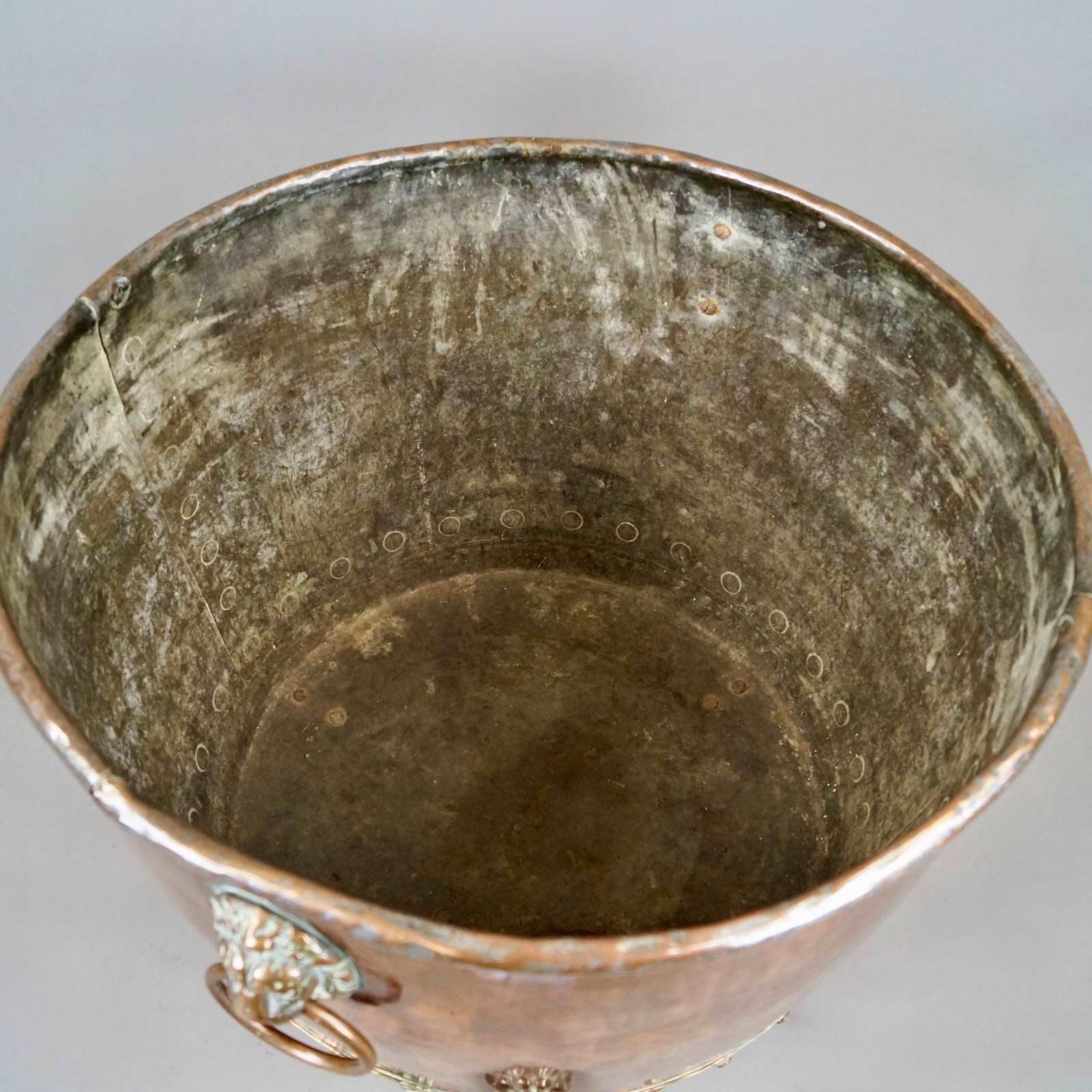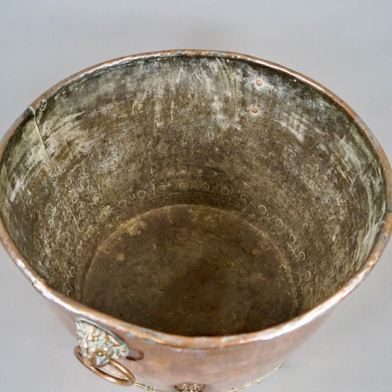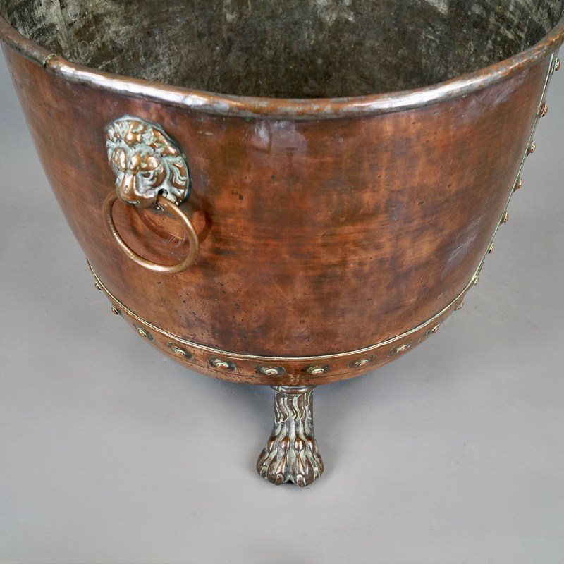 A very large Victorian copper log bin. With Lions mask ring handles and paw feet. In good and original condition. 510mm high and 610mm diameter. English. Circa 1860.
