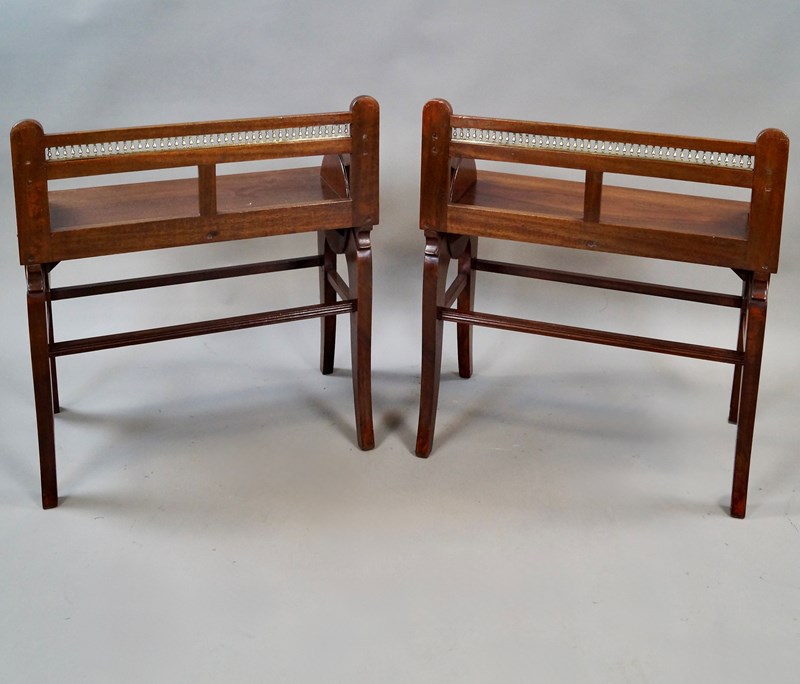 An Excellent Pair Of Mahogany Jas Shoolbred Benches. In very good and original condition. 620mm high, 560mm wide, 310mm deep and 430mm seat height. English. Circa 1880.