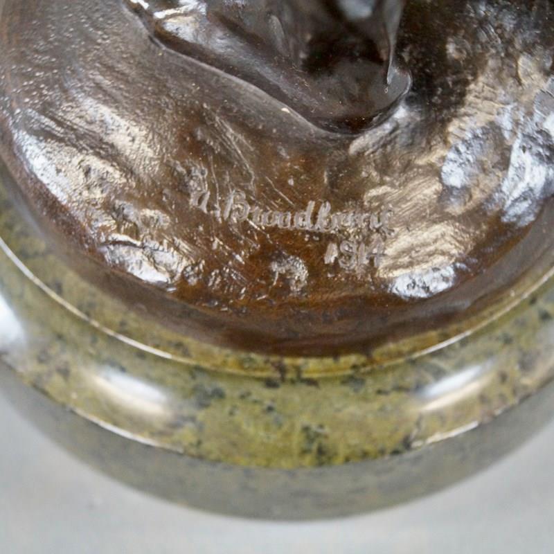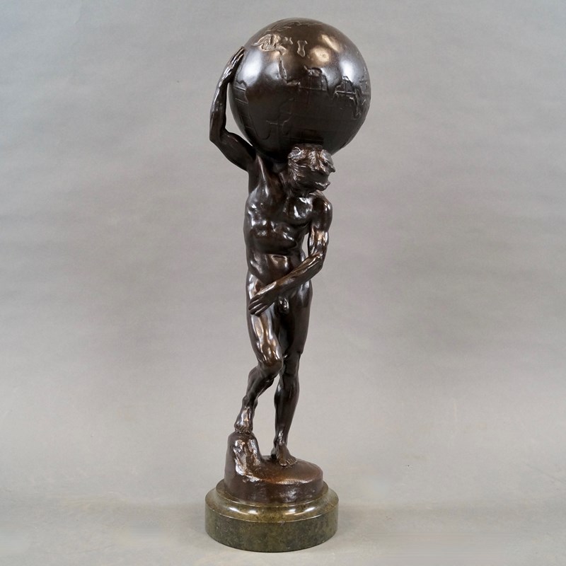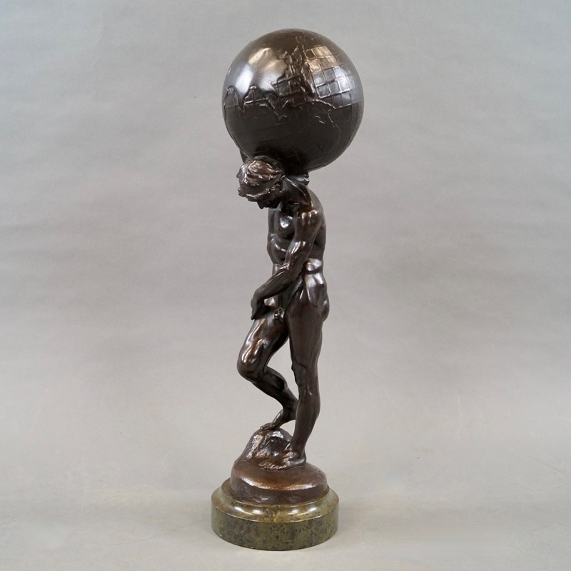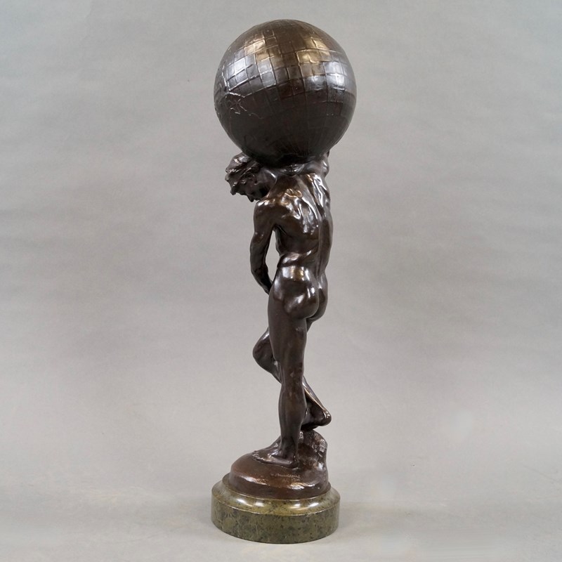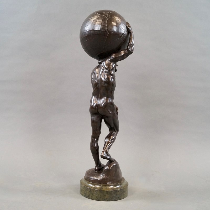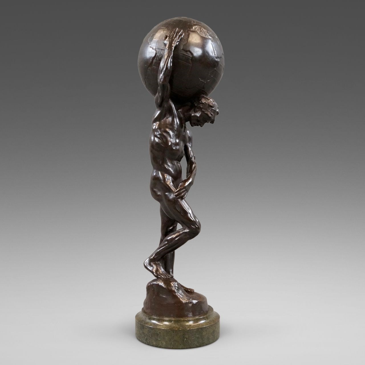 Abraham Broadbent (1868-1919), bronze figure of "Atlas", signed and dated 1914, on green marble base. In good and original condition. 510mm high and 140mm diameter. English.