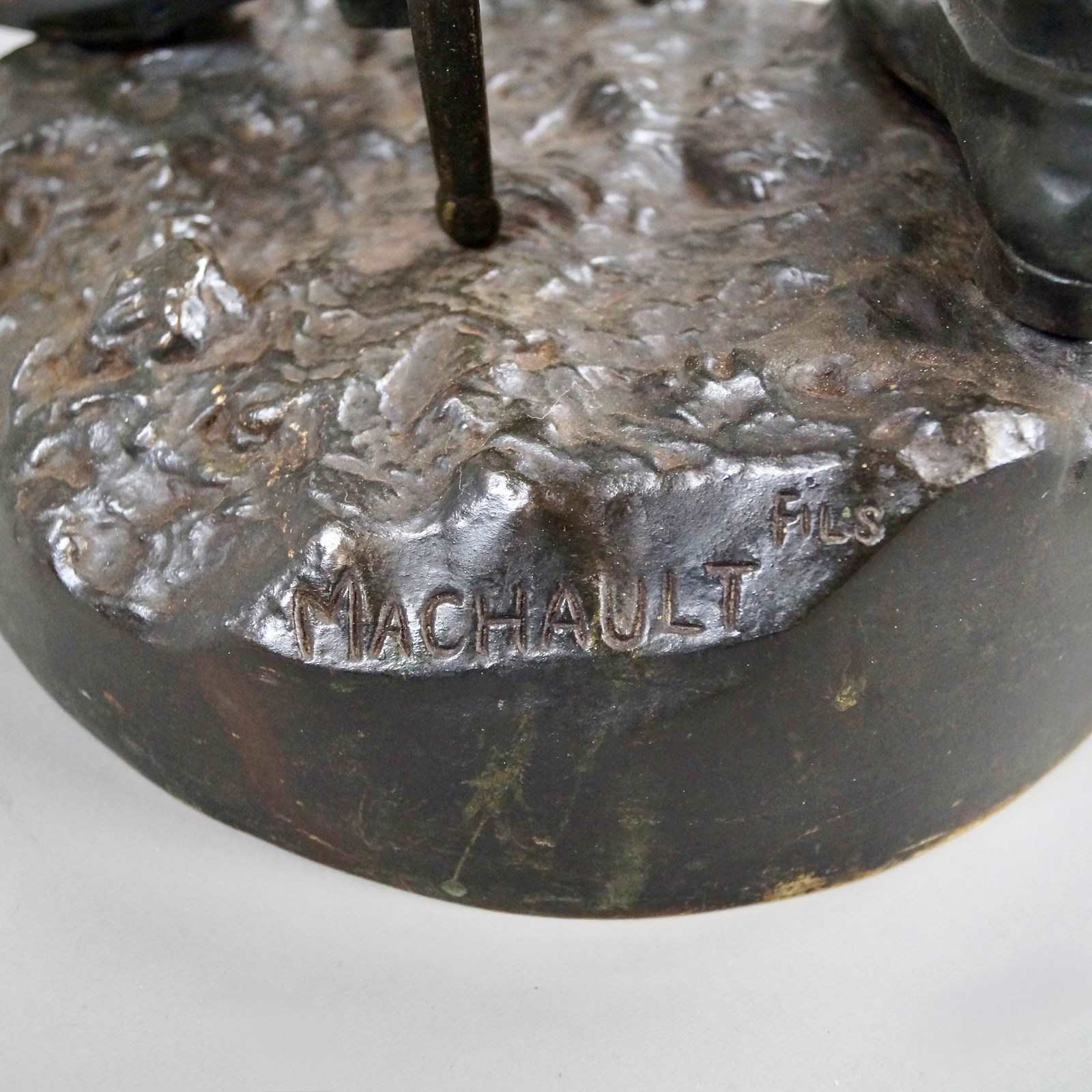 N.B. P. Machault fils (often signed as P. Machault & Fils or Marchault et fils) refers to a 19th-century French bronze-casting partnership, primarily consisting of Paul Émile Machault (1800-1886) and his son, Paul François Machault (born 1835). They are known for producing high-quality patinated bronze figures, including decorative arts like lamps and mystery clocks.