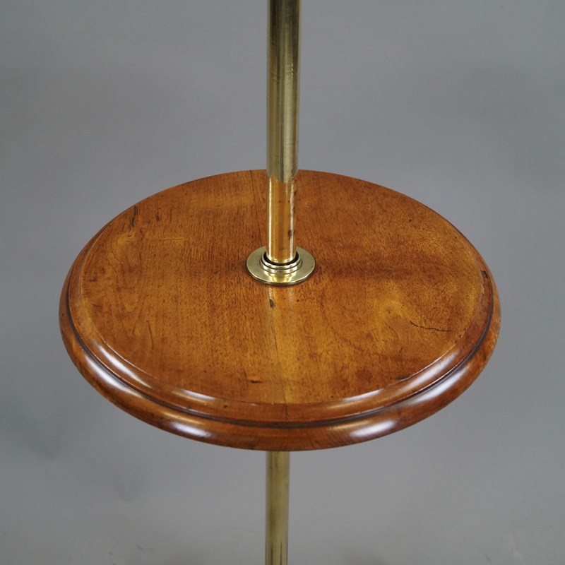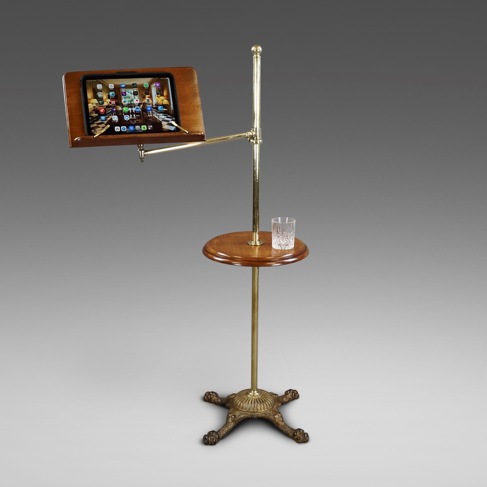 A Late 19th Century reading table. Raised on a cast iron base with paw feet and a brass pole supporting a circular walnut table and an adjustable walnut book rest. In very good and original condition. 1220mm high, 760mm wide and 140mm deep. English. Circa 1880.
