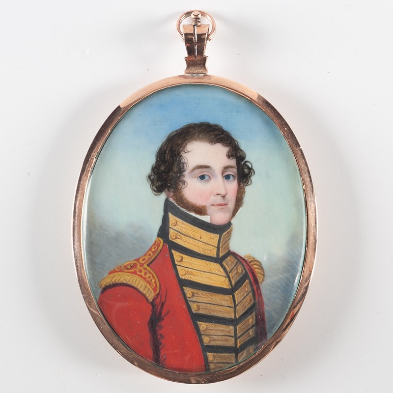 A miniature portrait of an Officer of a Royal Regiment of Foot, painted on ivory by Frederick Buck in around 1815.