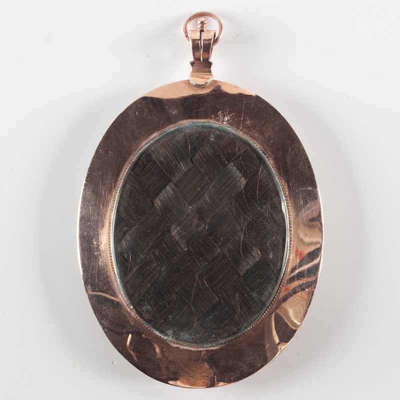 Within a gold metal frame. A panel of the sitters plaited hair under glass to the reverse.