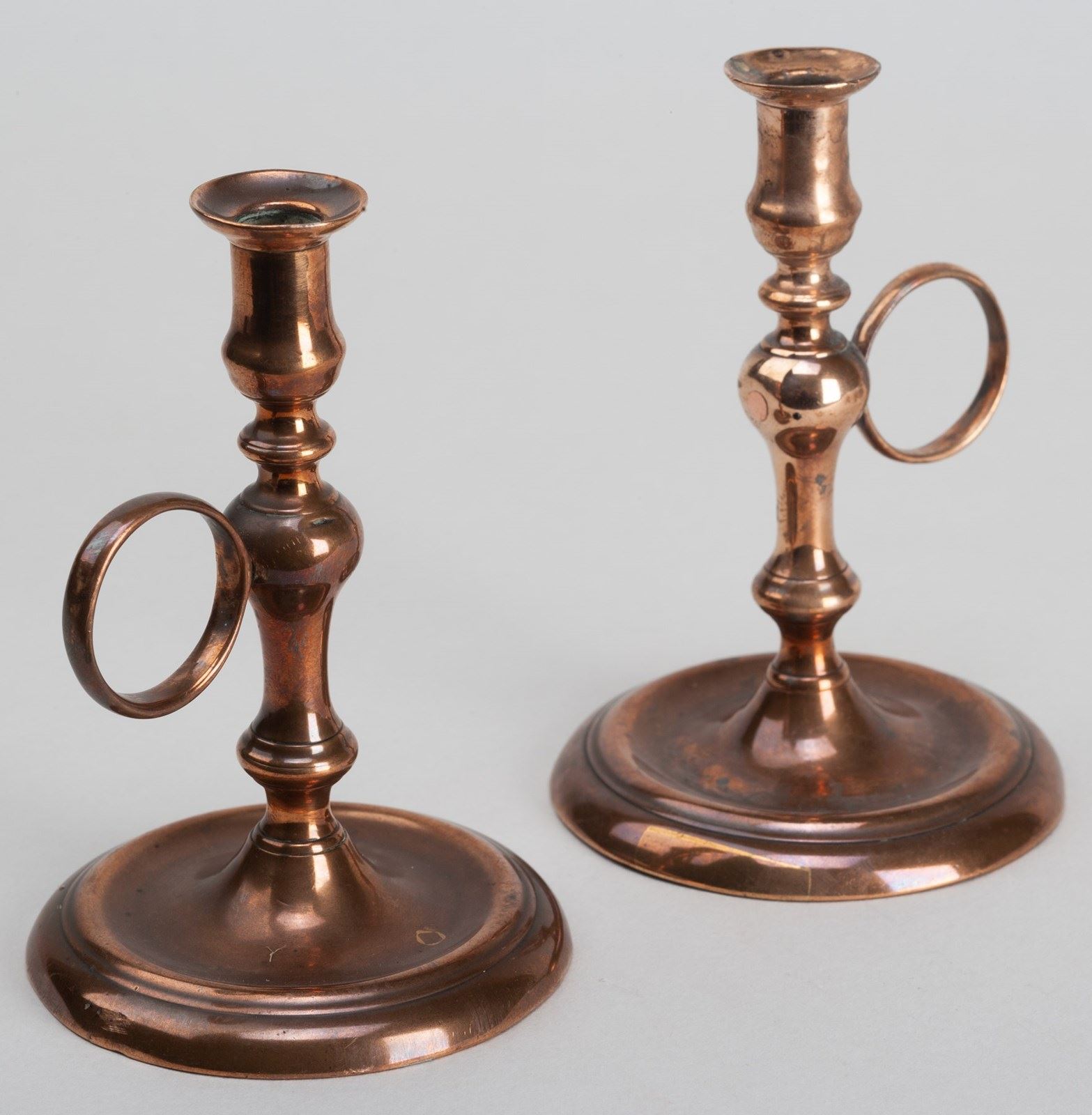 Of a rare form, with ring handles fixed to the top of the baluster column, single piece cast columns, peened over fixing to the bases.