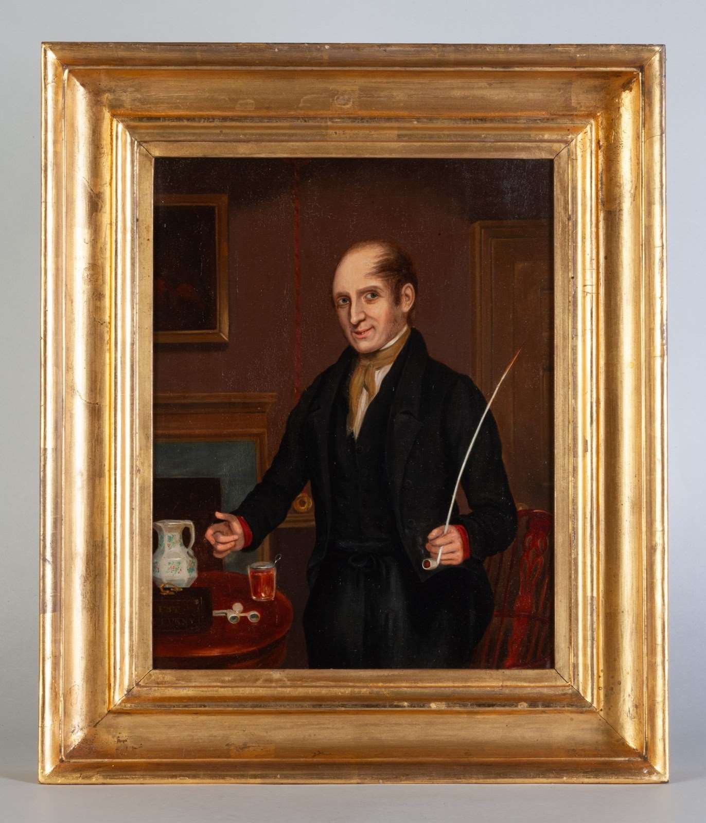 Painted in oil on a wooden panel, within a gilt hollow frame contemporary with the work.