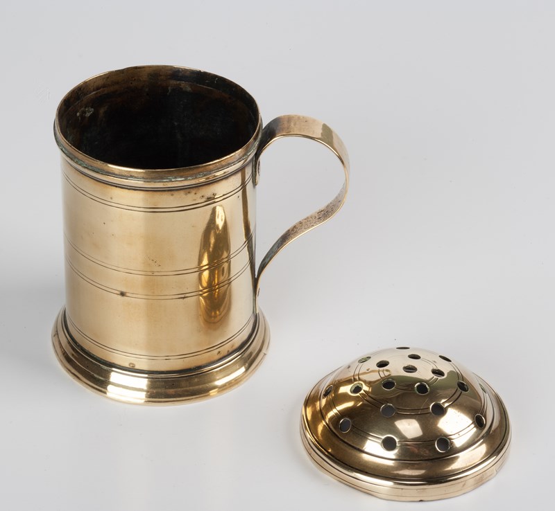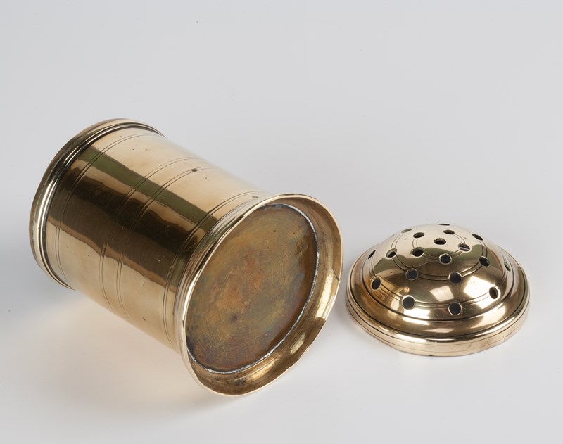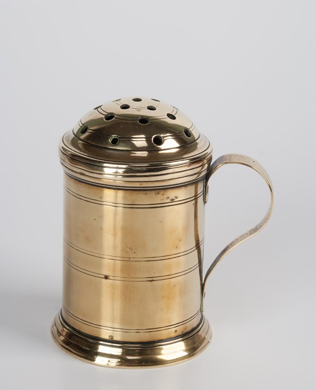 A flour dredger from a Country House kitchen, the push-fit pierced lid allowing for the scattering of flour, often over meat in preparation for cooking by basting.