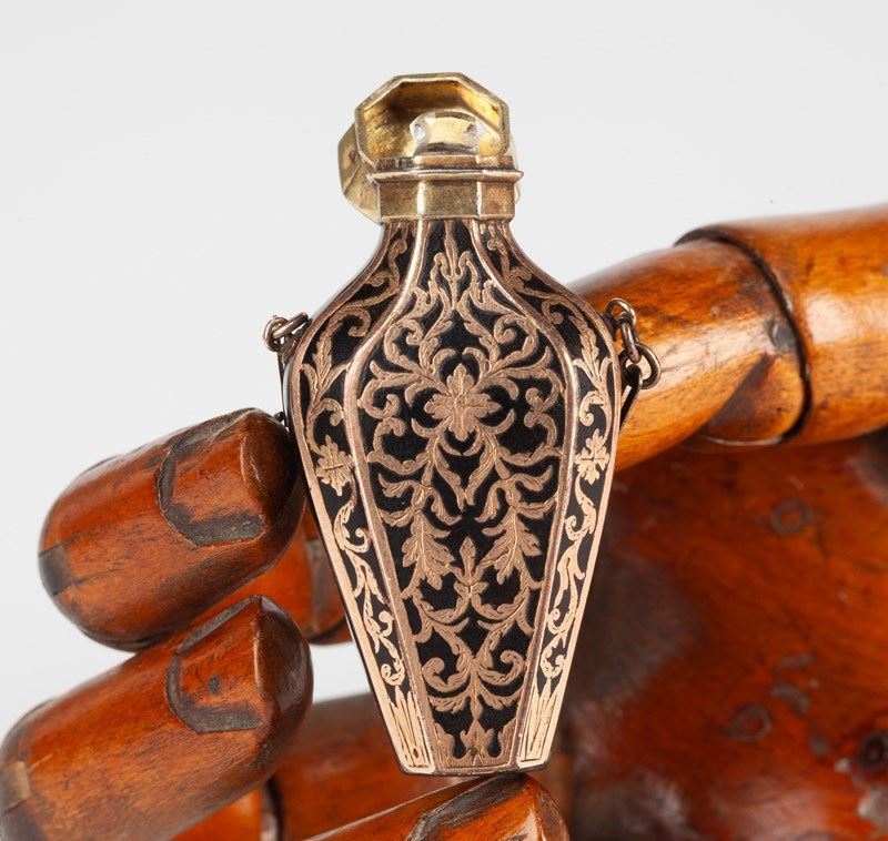 Engraved And Gilded Silver Over Glass Scent Bottle