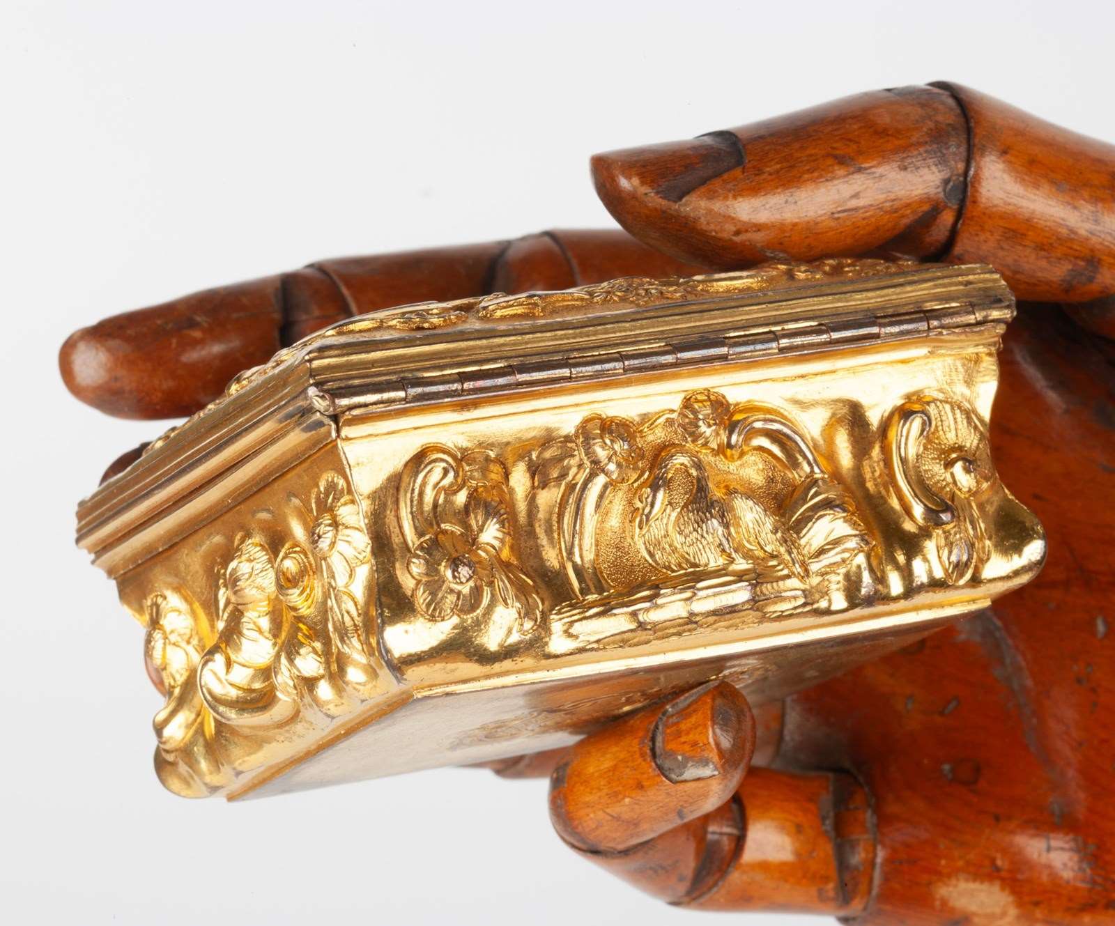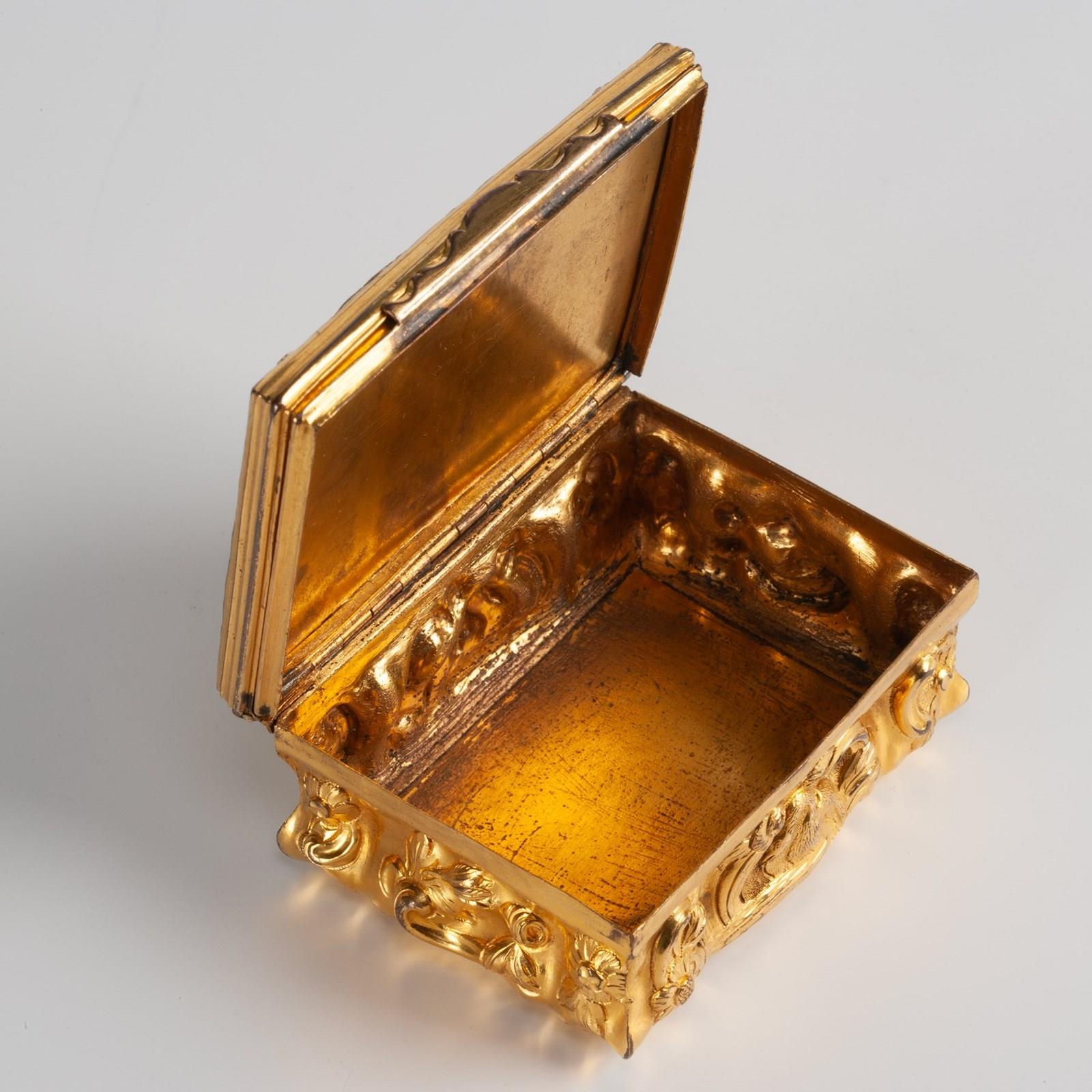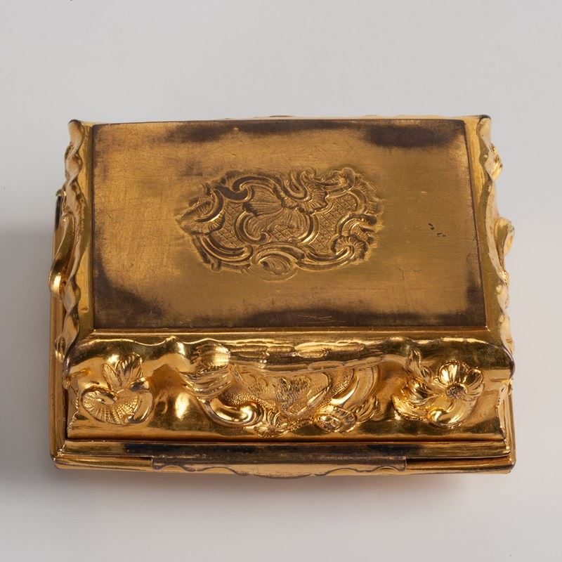 A rococo gilt copper snuffbox dating to around 1760 and probably from the Birmingham workshops of either John Bentley or John Gimlet.