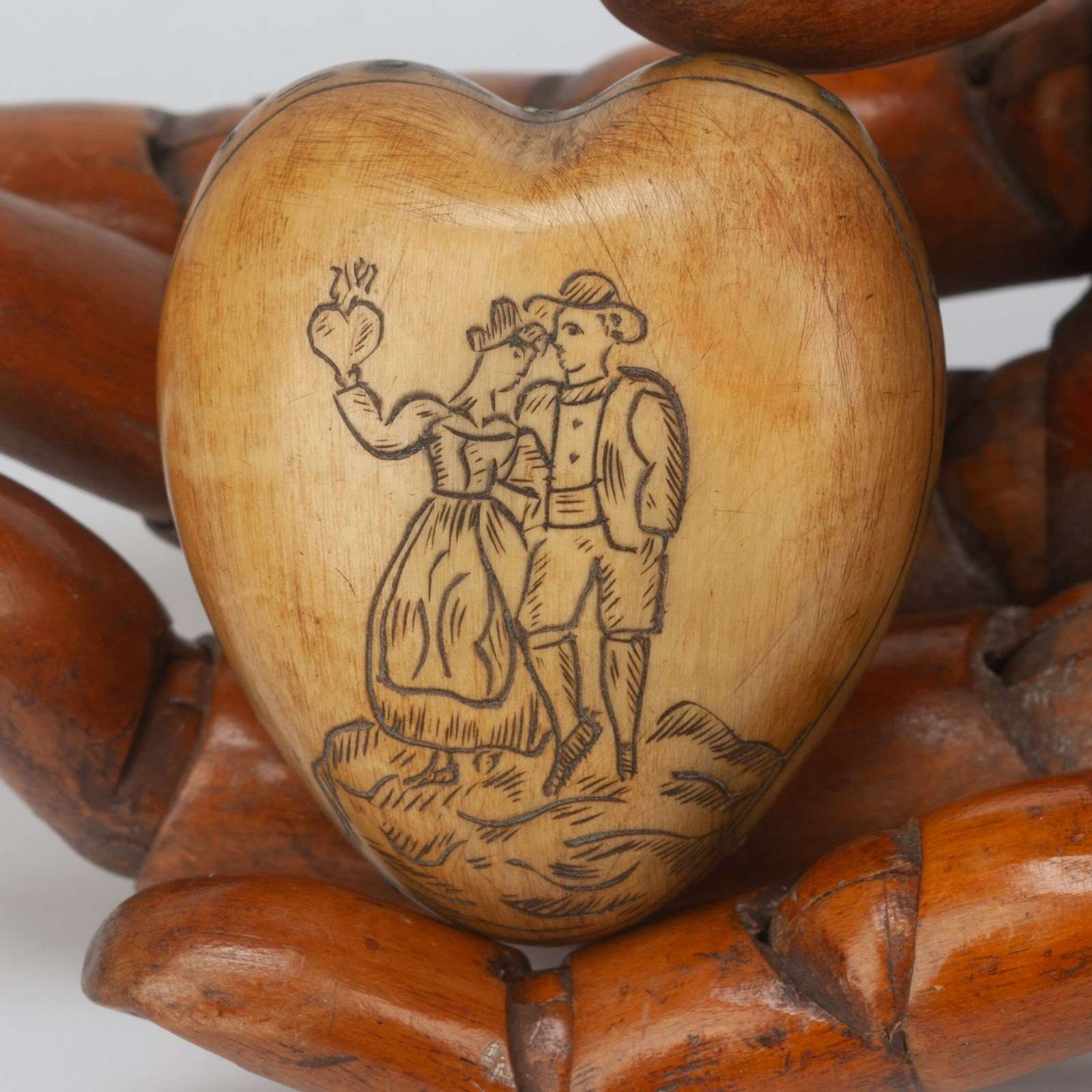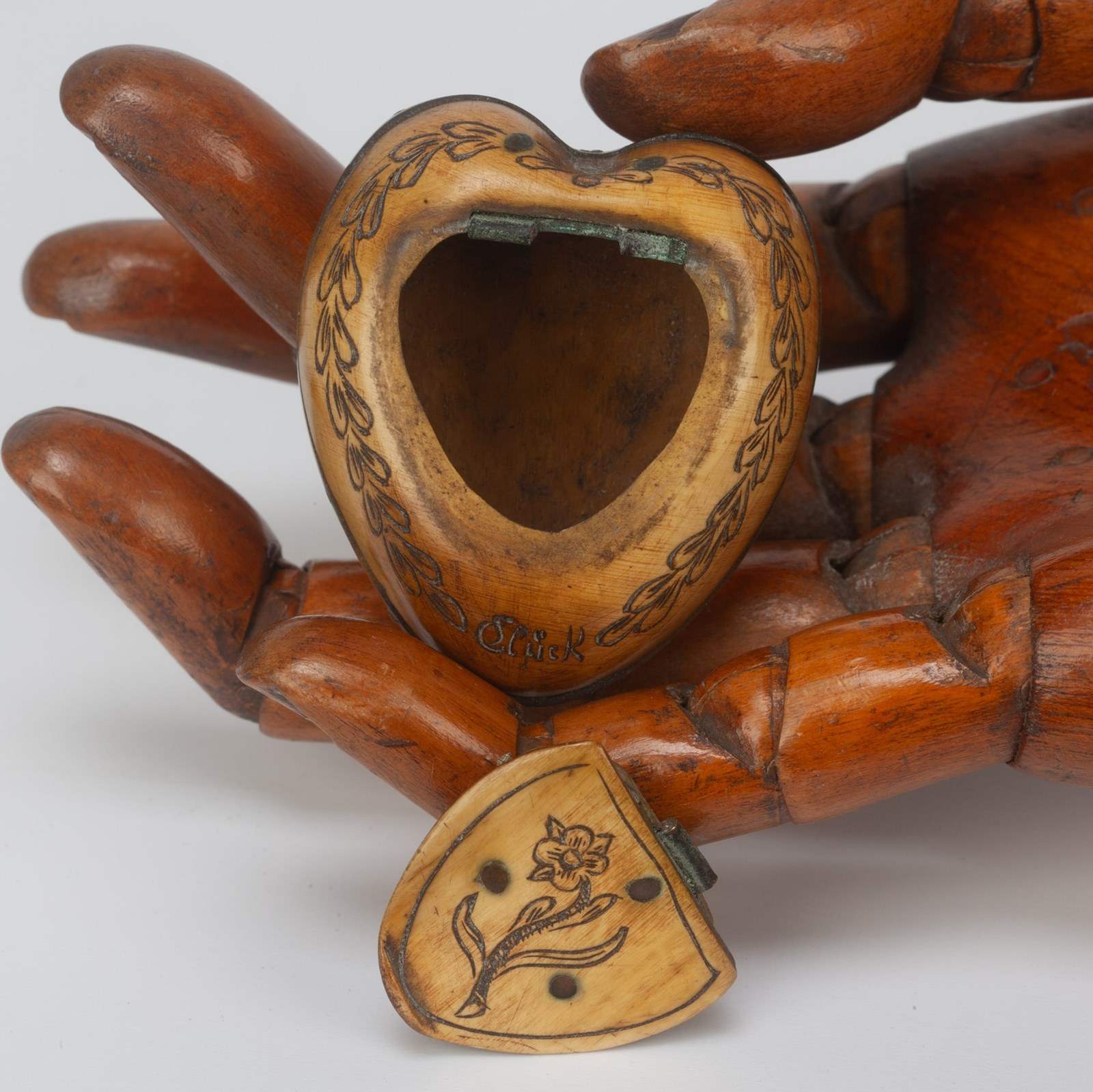 Heart-shaped horn snuff box, a souvenir from Gluck, Tyrol.
