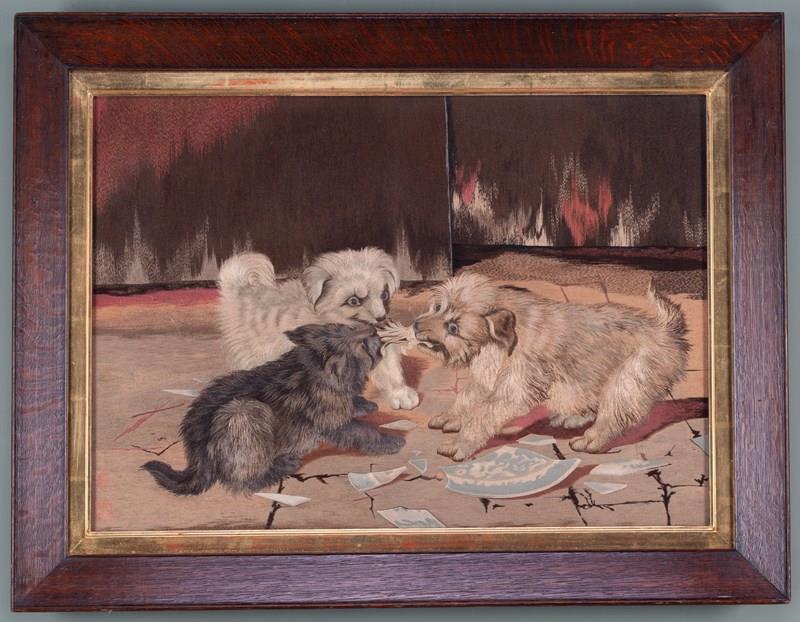 An exceptional Japanese silk embroidery made for the European market, signed with two character seals in red, bottom left hand side.