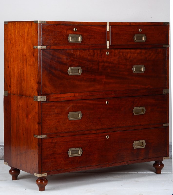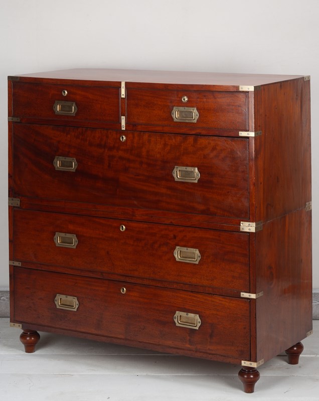 An excellent example of a Victorian military campaign chest of drawers, the show wood solid, attractively grained mahogany.