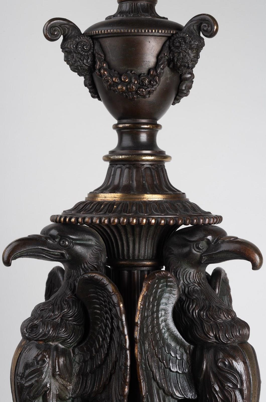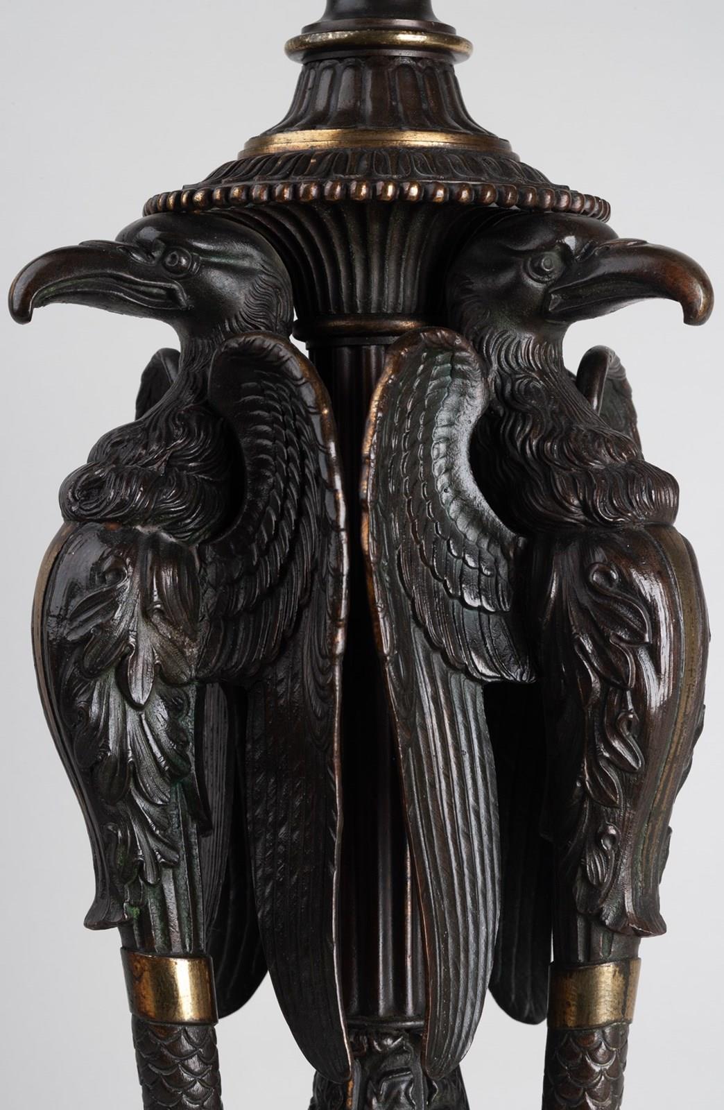 An amazing Regency period bronze table lamp the designer within the circle of Thomas Hope or George Bullock.