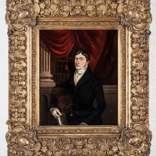Created around 1810 and within a gilt gesso Morland design frame of the period.