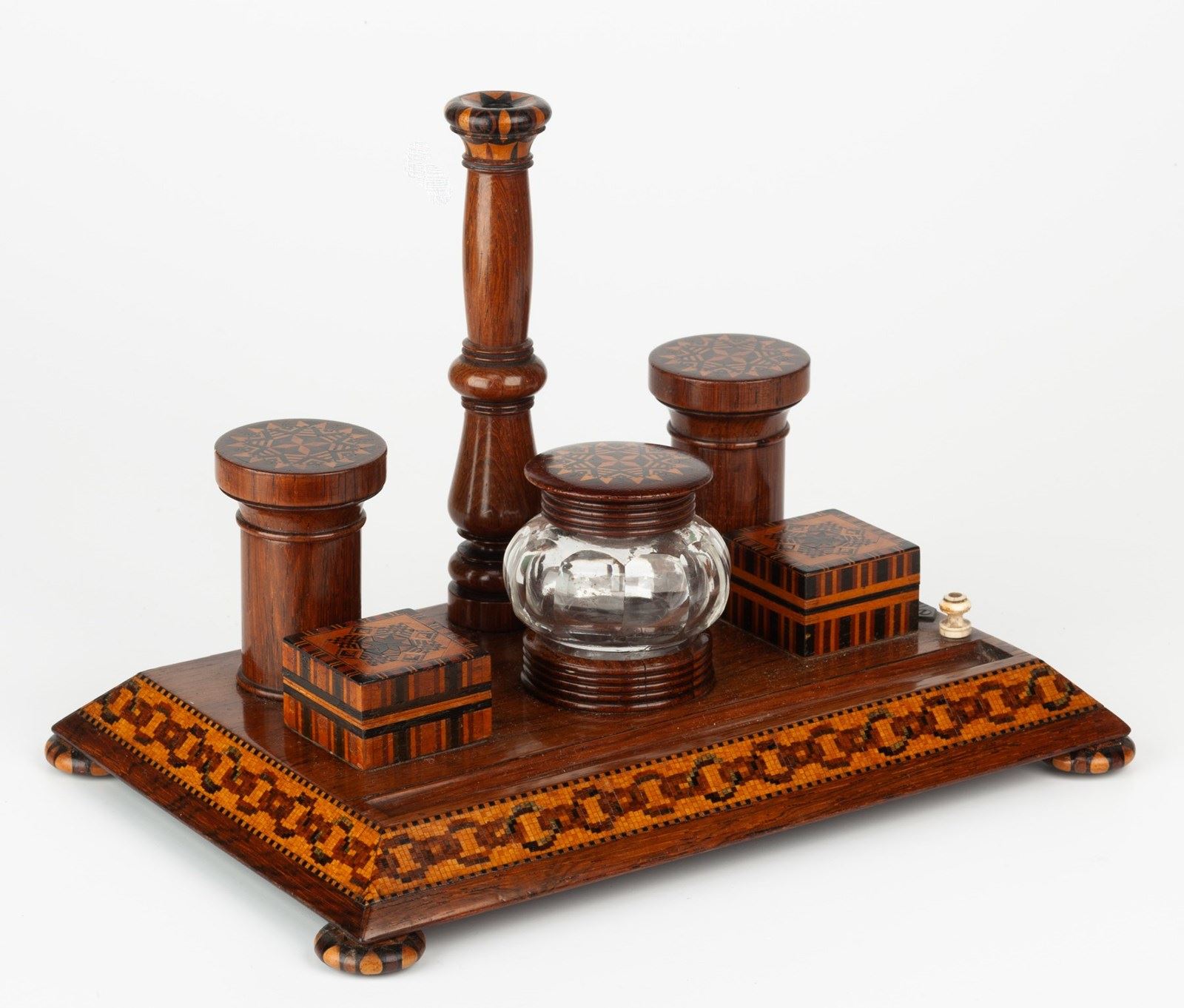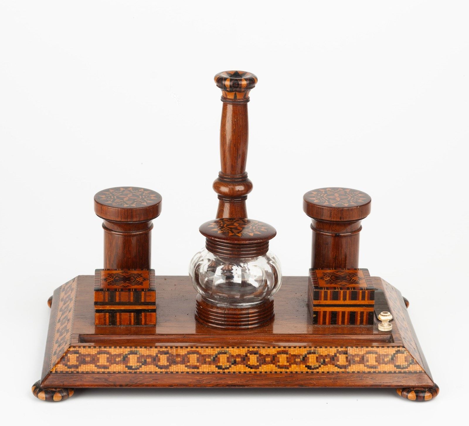 Tunbridgeware Desk Inkstand, manufactured by T. Barton, Late Nye in around 1860.