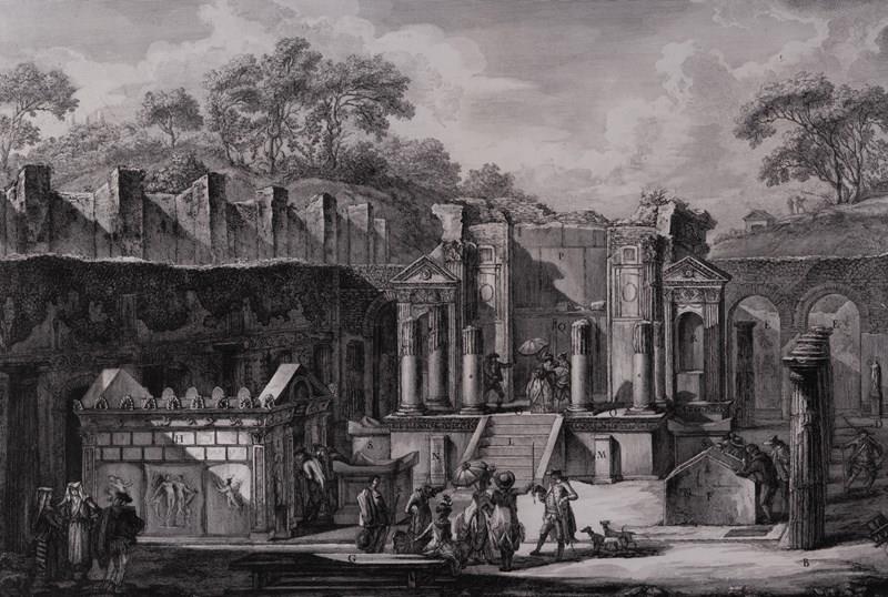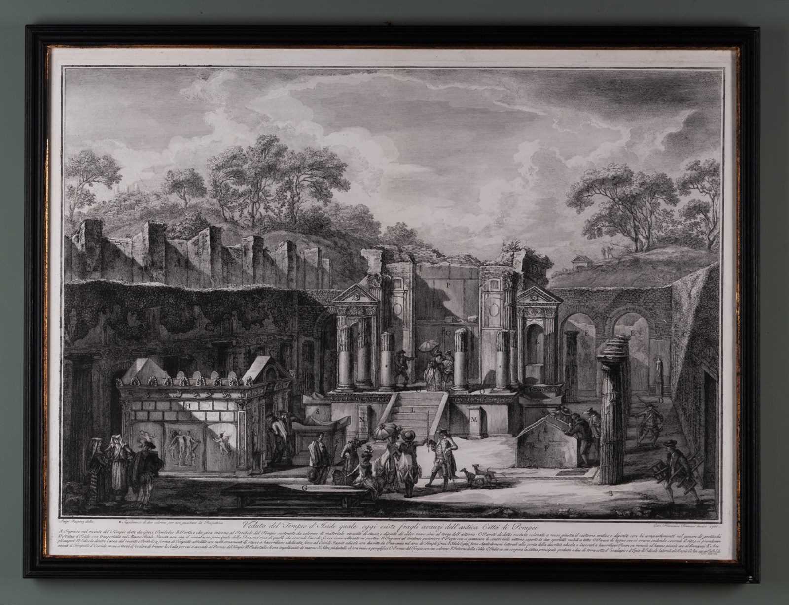 'Veduta del Tempio d'Iside quale oggiesiste fragli avanzi dell'antica Citta di Pompei'. Drawn from life by the French artist Louis Jean Desprez and etched by Francesco Piranesi in 1788; an extensive key lettered in the title band.