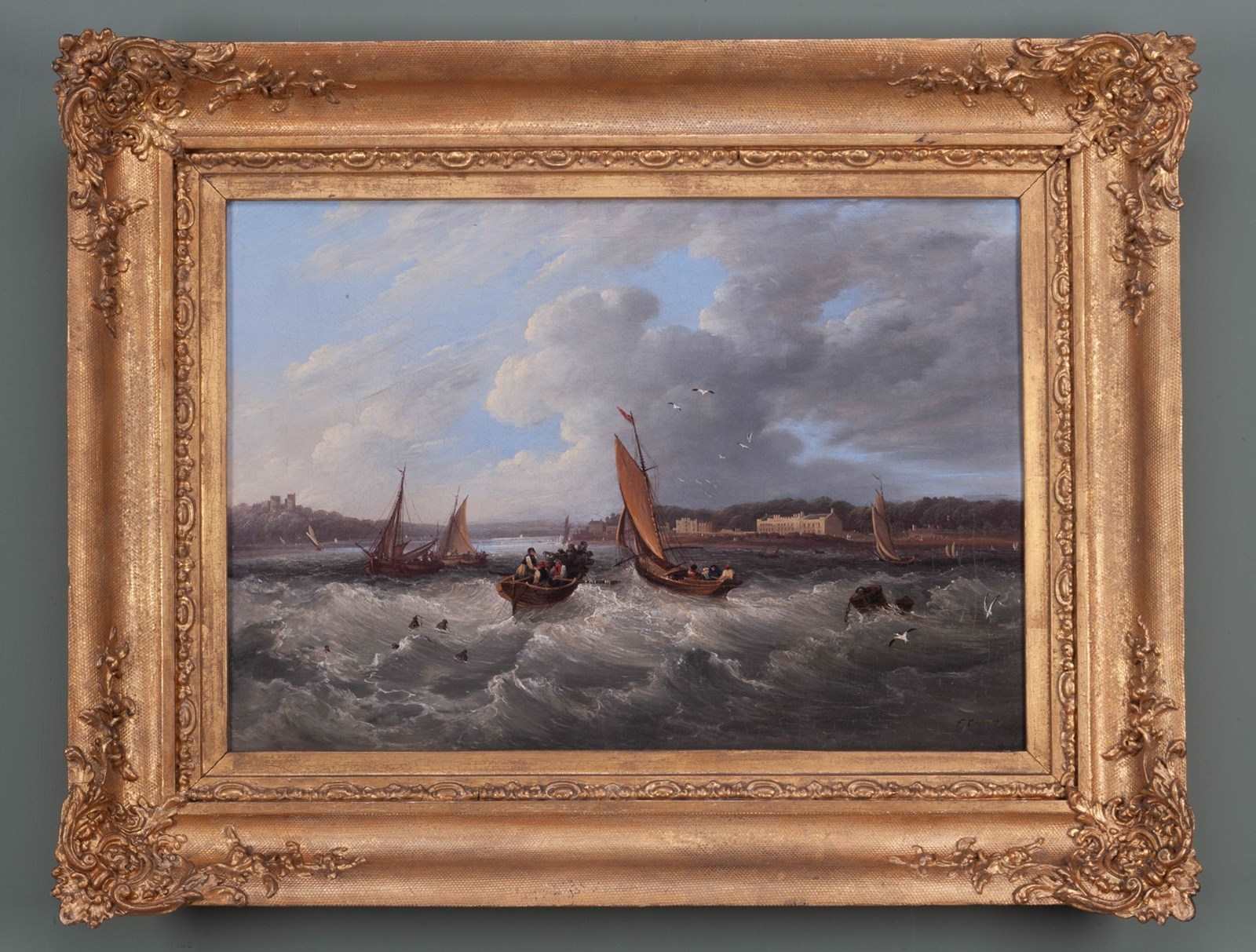A fine pair of paintings by Frederick Calvert;Boats at the Mouth of the River Medina with Cowes Castle and Cowes town in the distance, and the pendant, showing Cowes again but from further out to sea and around the coast.