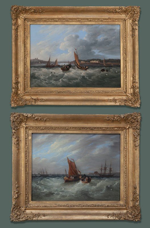 Although working mainly in London from around 1810, Frederick Calvert was in fact an Irish artist successful as a painter of marine and coastal scenes; this pair of paintings being typical of his principal output. The Isle of Wight, Illustrated in a Series of Coloured Views was published in 1846 containing 20 hand-coloured aquatint plates by Percy Roberts after Calvert.