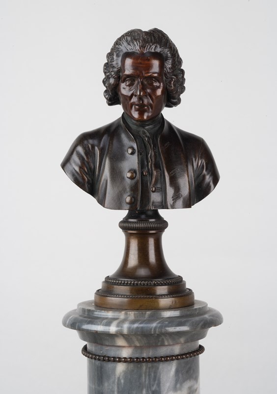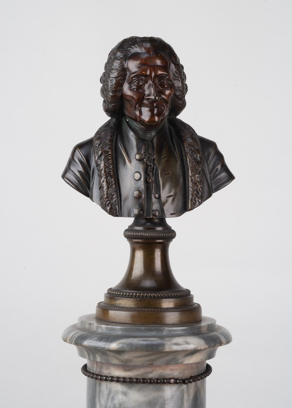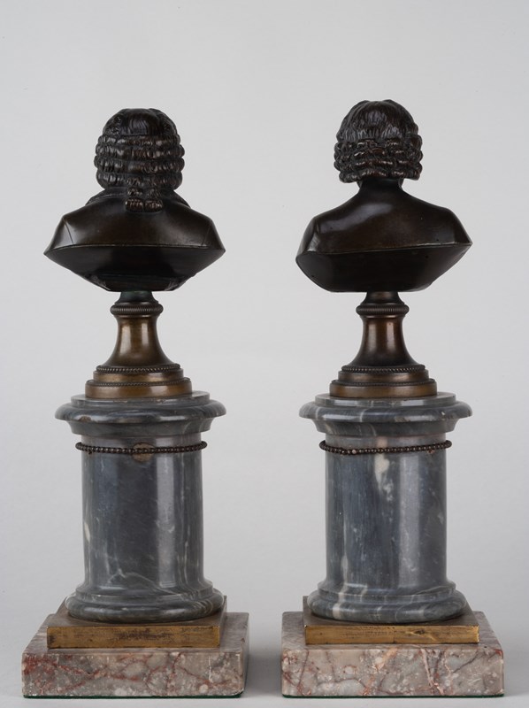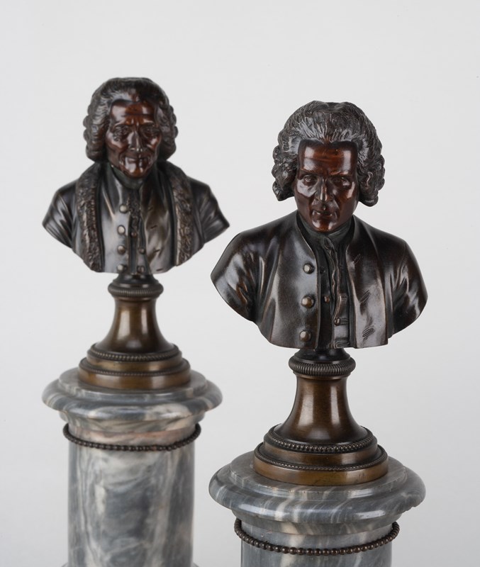 When these two heros of the enlightenment died within a few weeks of each other, Houdon seized upon the commercial opportunity to produce his much praised portrait busts as a pair, although their enmity towards each other was well known and to be in each others company was never as cordial as suggested here.