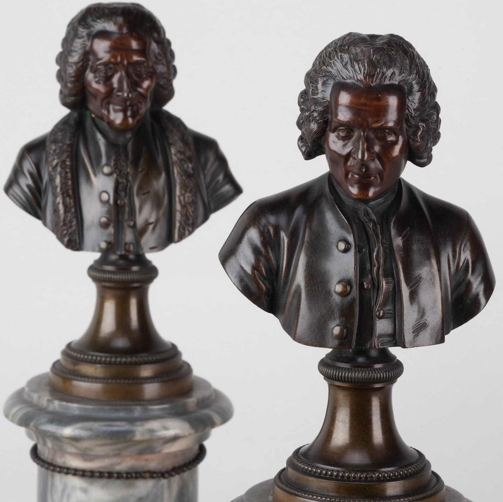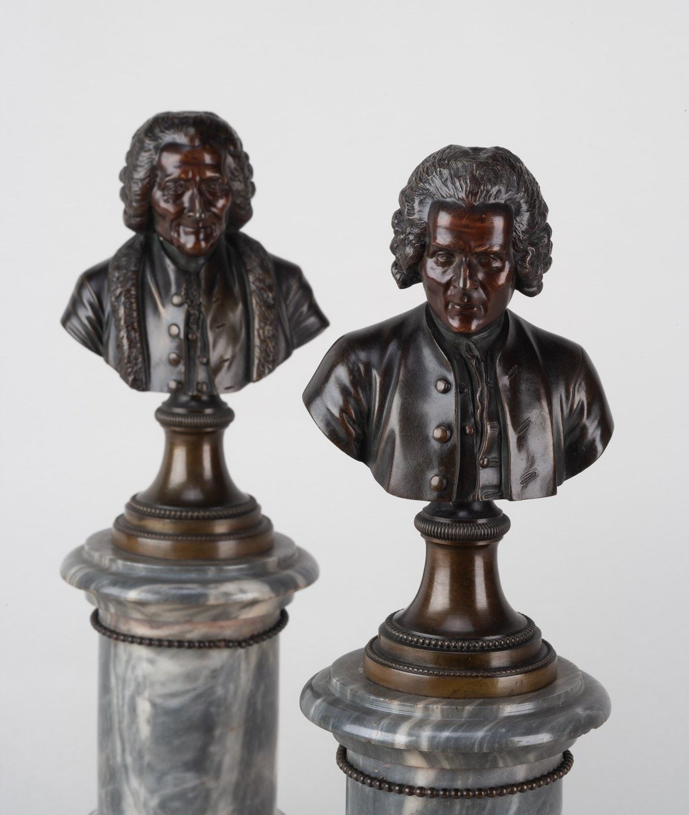 A fine pair of bronze library busts after the models of 1778 by Jean Antoine Houdon (1741-1828).