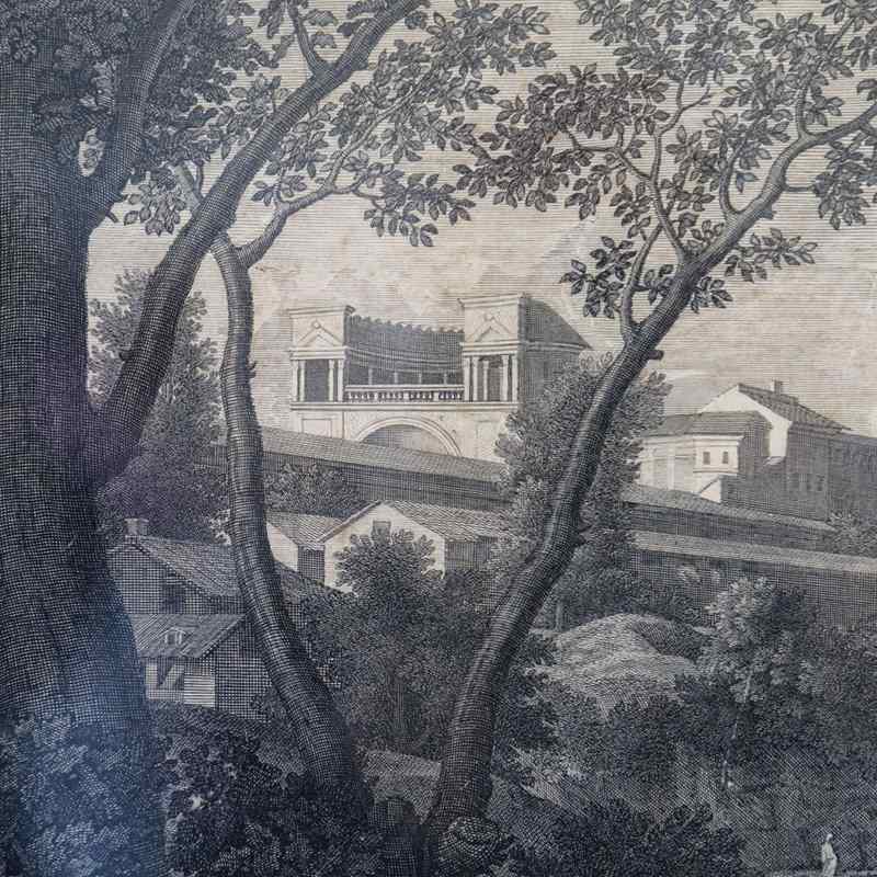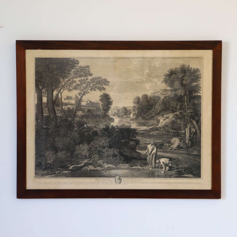 Origin & Era: 18th Century French engraving; inspired by Nicolas Poussin’s celebrated painting, Landscape with Diogenes which is in Le Musée du Louvre, Paris