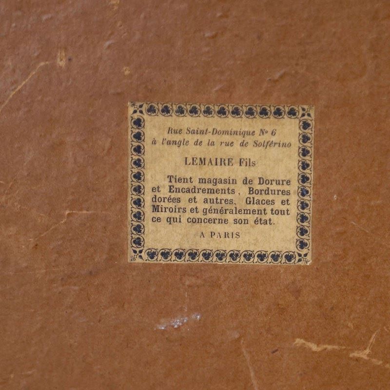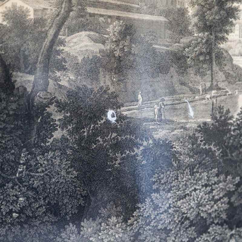 Materials: Print of engraving on aged, high-quality paper, preserved behind original protective glass and housed within its authentic carved wooden frame